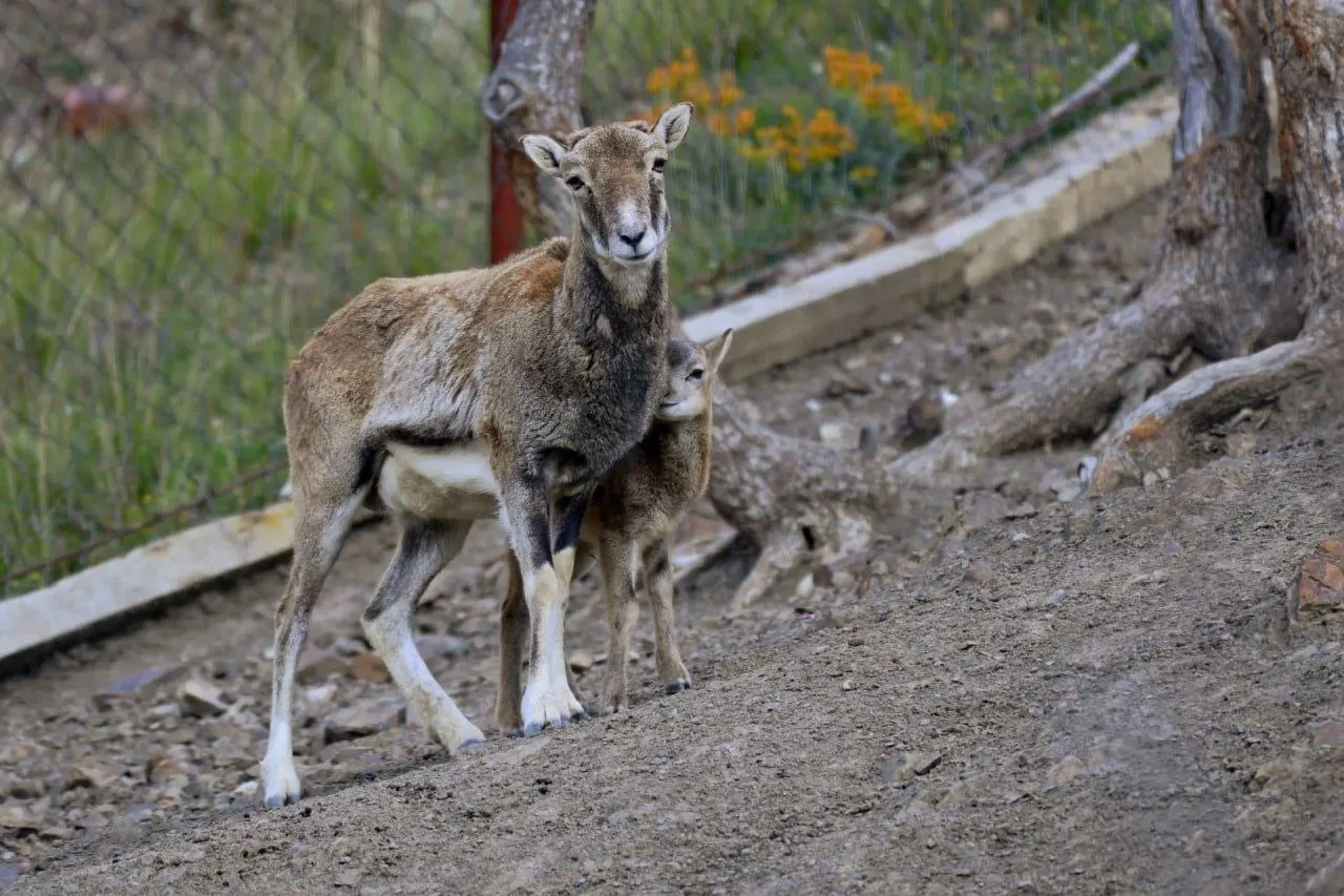 В национальном парке «Крымский» в дружном стаде муфлонов пополнение. У одной из самочек родился ягнёнок. Пока он неразлучен с матерью и везде за ней следует.