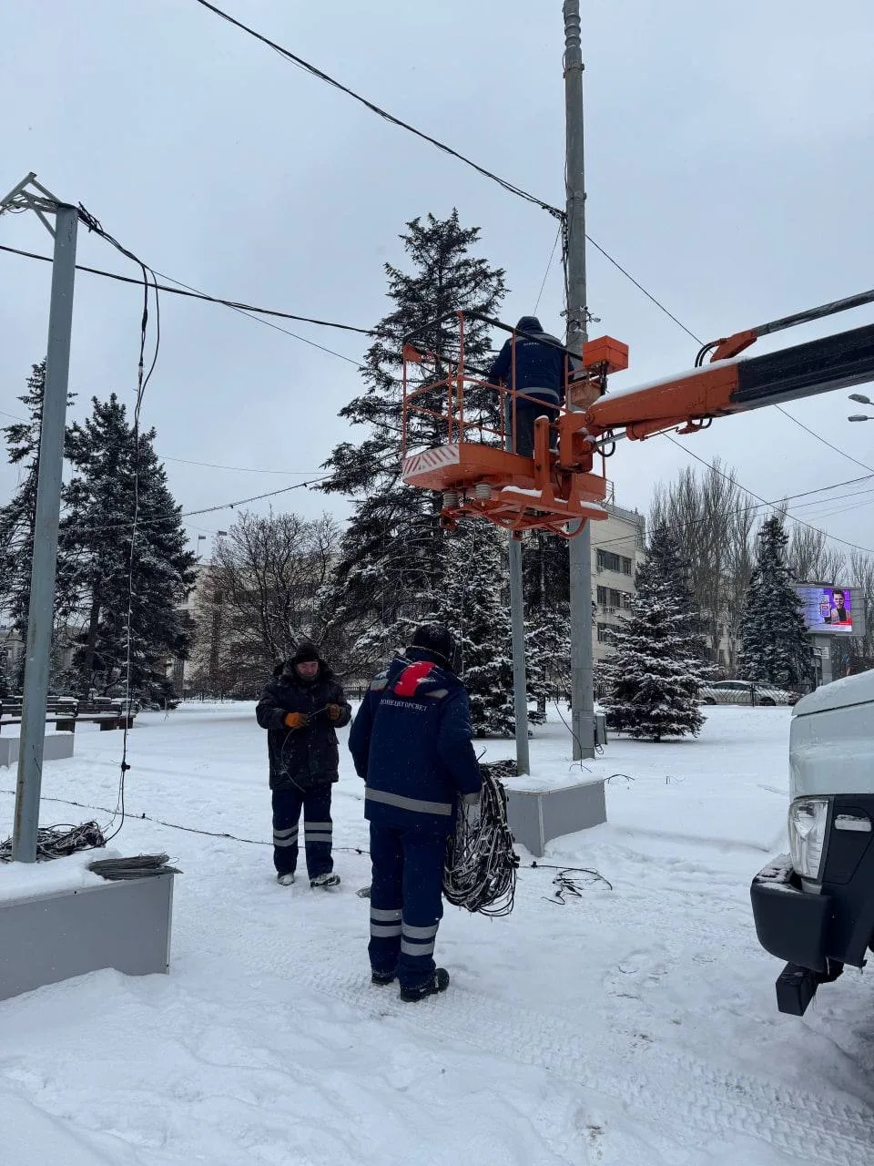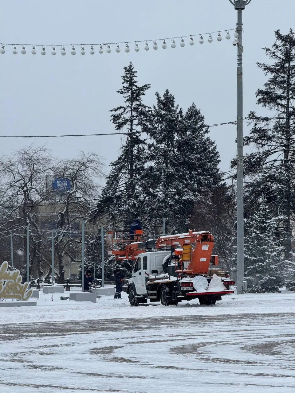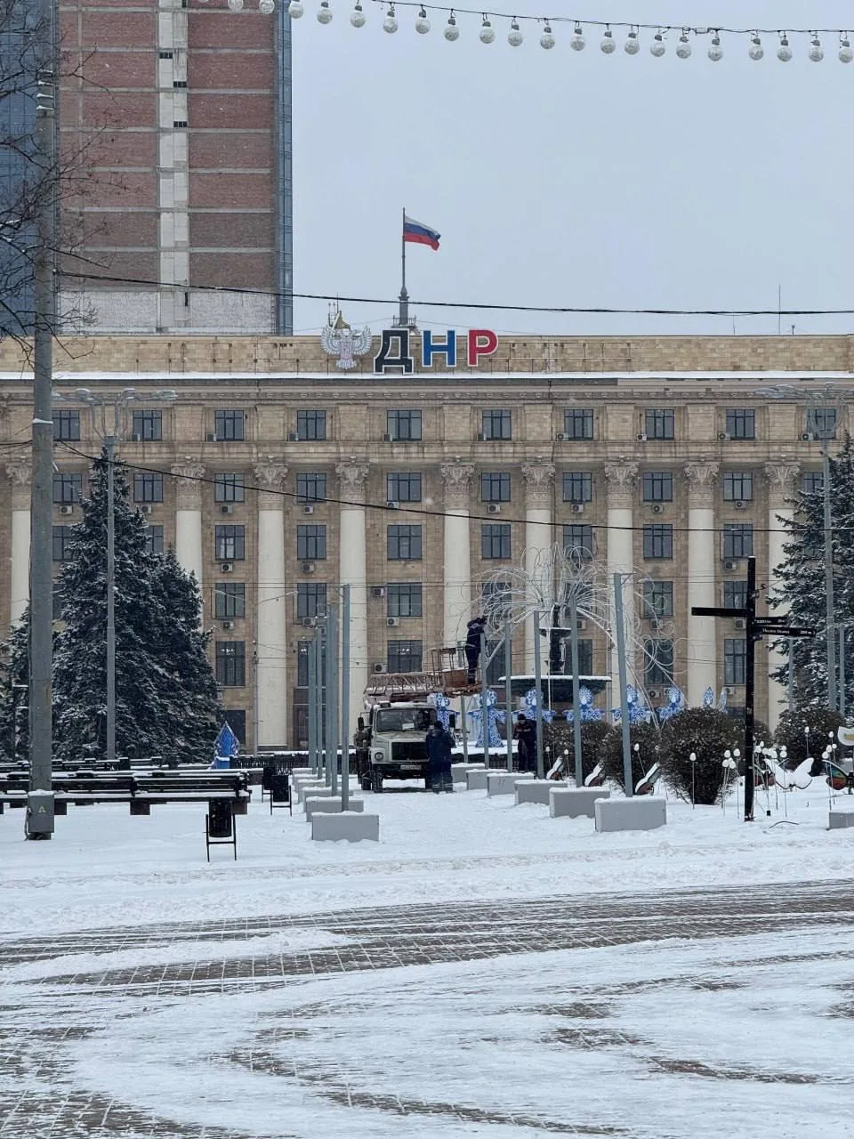В Донецке приступили к уборке новогодних декораций