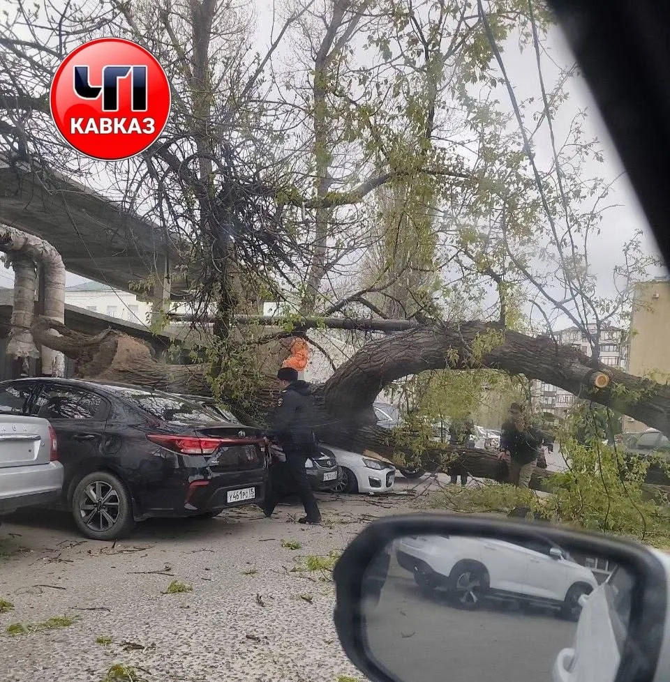 ⚡️Из-за сильного ветра дерево упало на три припаркованных автомобиля возле Второй городской больницы в Махачкале.