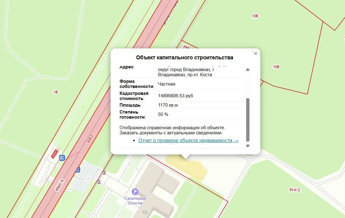В апреле санаторно-курортное объединение «Курорты Осетии» решило продать участок на 7,1 тыс. «квадратов» и недострой площадью 1,17 тыс. кв. м на проспекте Коста во Владикавказе. Согласно данным кадастровой карты, незавершенное здание — реабилитационный кардиологический центр в санатории, который готов наполовину. Продажу хотели провести через аукцион на повышение с начальной ценой — 95 млн рублей. За время торгов была подана всего одна заявка, ИП Аланом Кисиевым.