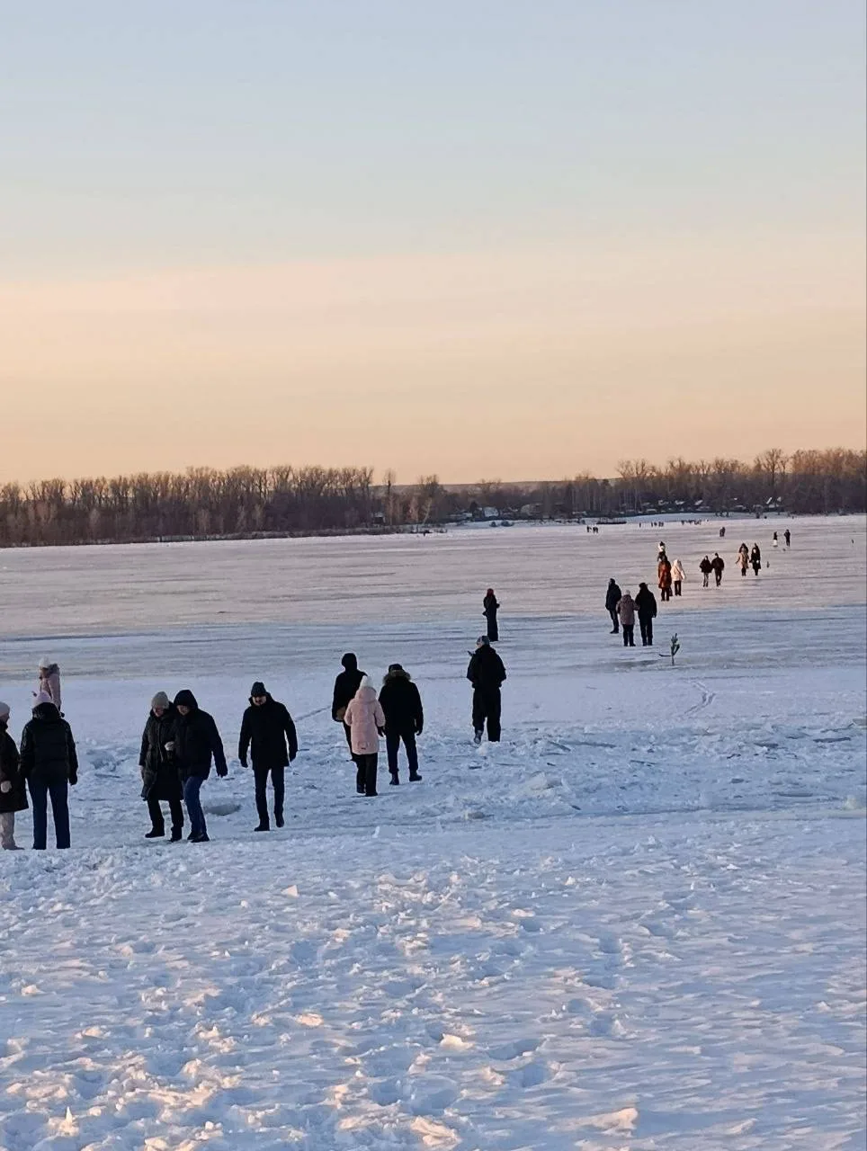 Люди массово переходят Волгу у Полевого спуска