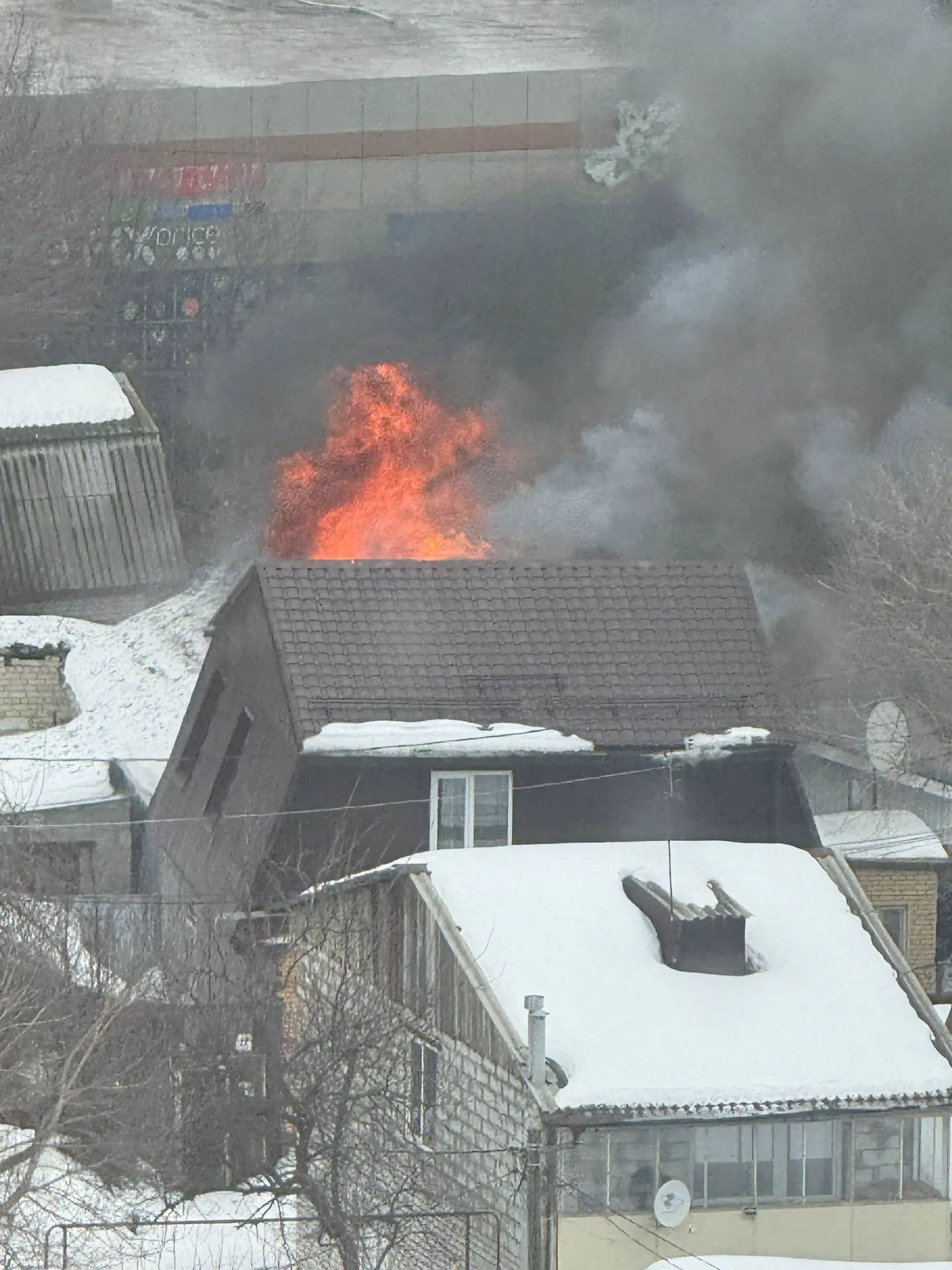 Пожарные борются с возгоранием частного дома у рынка «Арига»