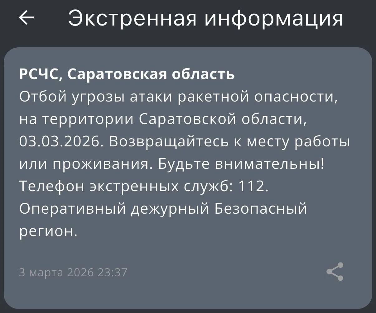 ❗️Угроза атаки БПЛА на территории Саратовской области все еще сохраняется