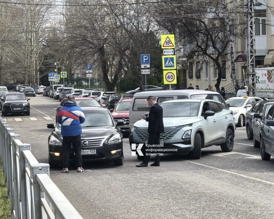 На ул. Павленко в Симферополе не поделили дорогу. Образовывается пробка.