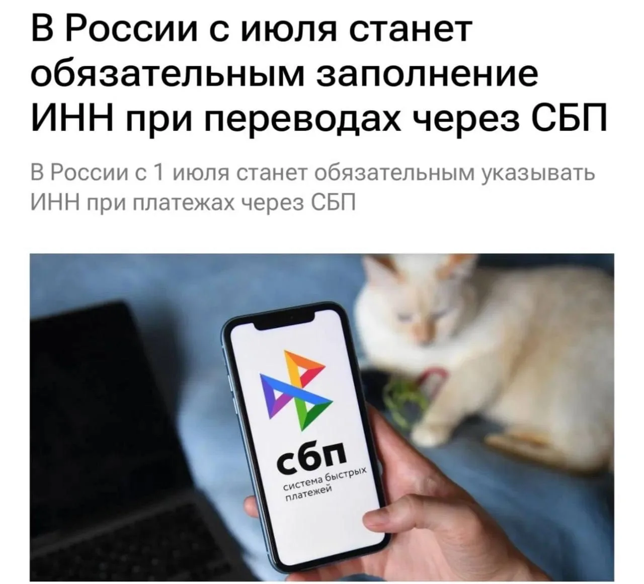 ⚡️Переводы через СБП с 1 июля будут проводить только с указанием ИНН