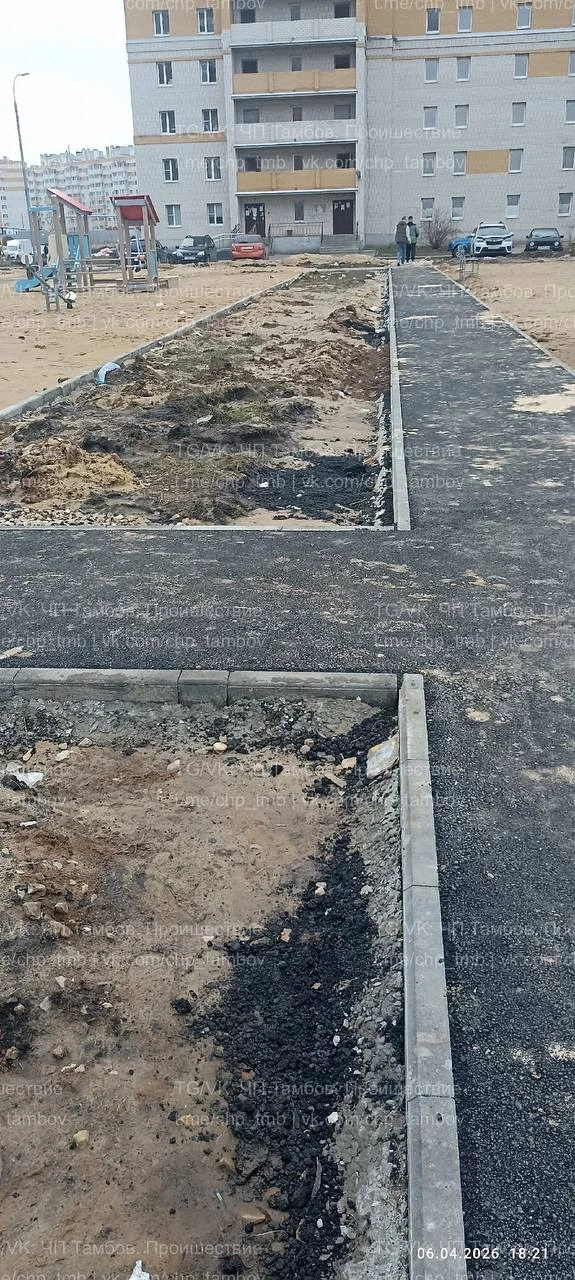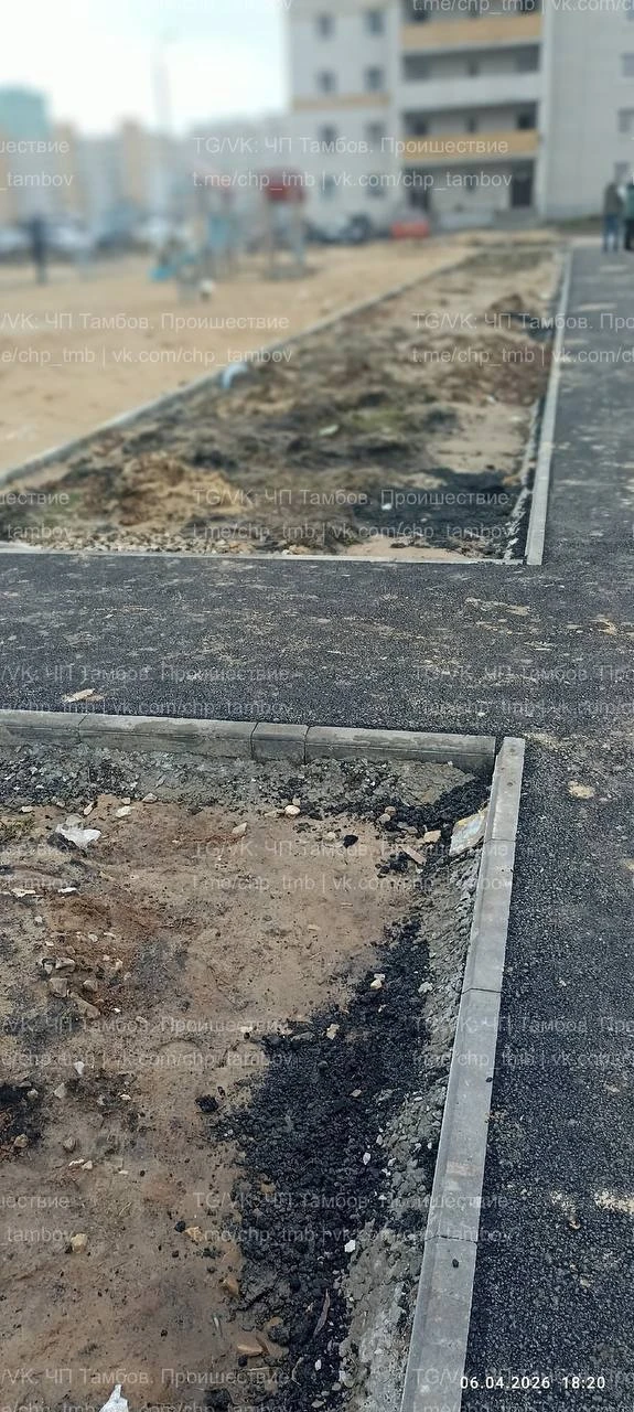👷♂️ Асфальт уложен качественно, но вот старый слив, оставшийся с времён СССР, давно не чистился, и теперь вода стоит вокруг четырёх домов!