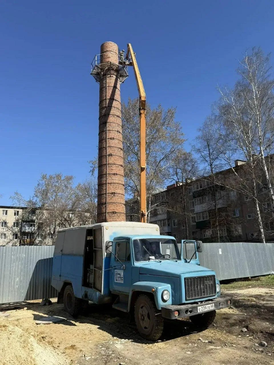 Тамбовтеплосервис» демонтирует дымовую трубу бывшей котельной Пензенская, 20.
