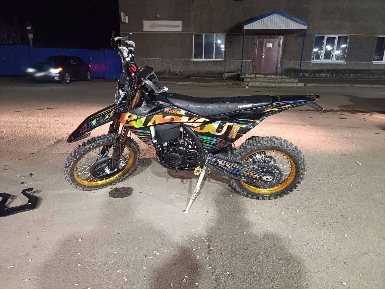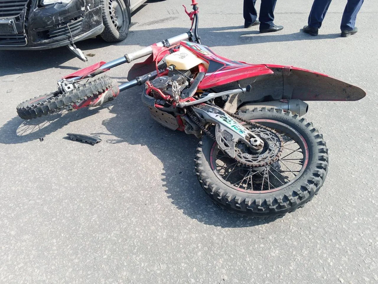 За рулем кроссового мотоцикла 11-классник, соответственно прав нет. С ним пассажир 9-классник. Поломались очень прилично! Один в реанимации! Со слов докторов на выпускную линейку вряд ли попадут!