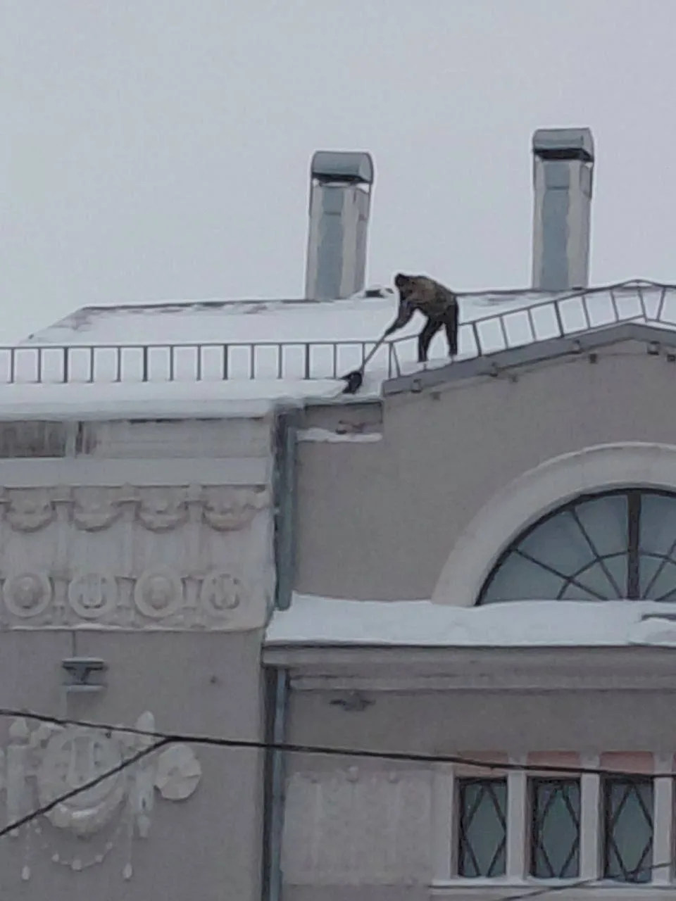 ❗️Самый бесстрашный борец со снегом замечен на крыше филармонии.