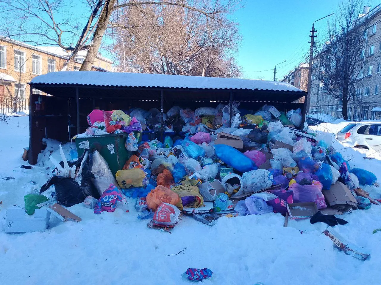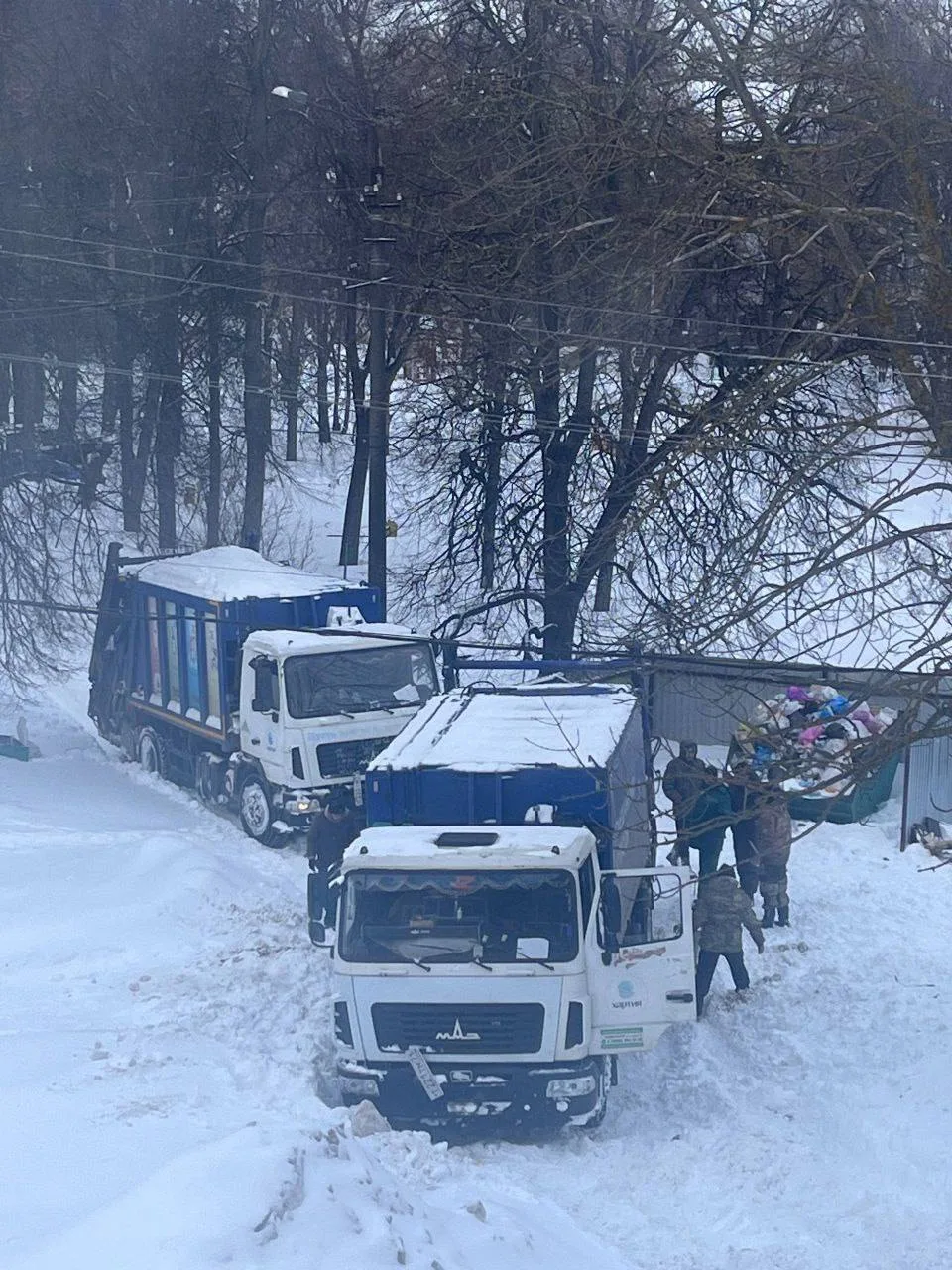Вот в таких условиях в эти дни грузовики забирают мусор.