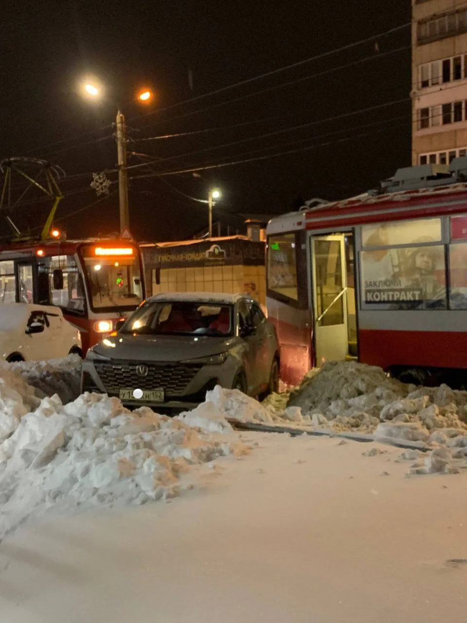 ❗️На Плеханова кто-то наигрался в каршеринг и бросил машину, теперь она мешает не только трамваям, но и уборке снега.