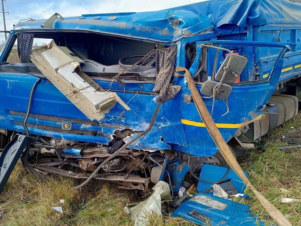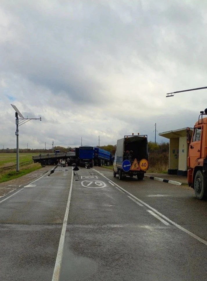 В Брюховецком районе произошло дорожно-транспортное происшествие: фура перевернулась.