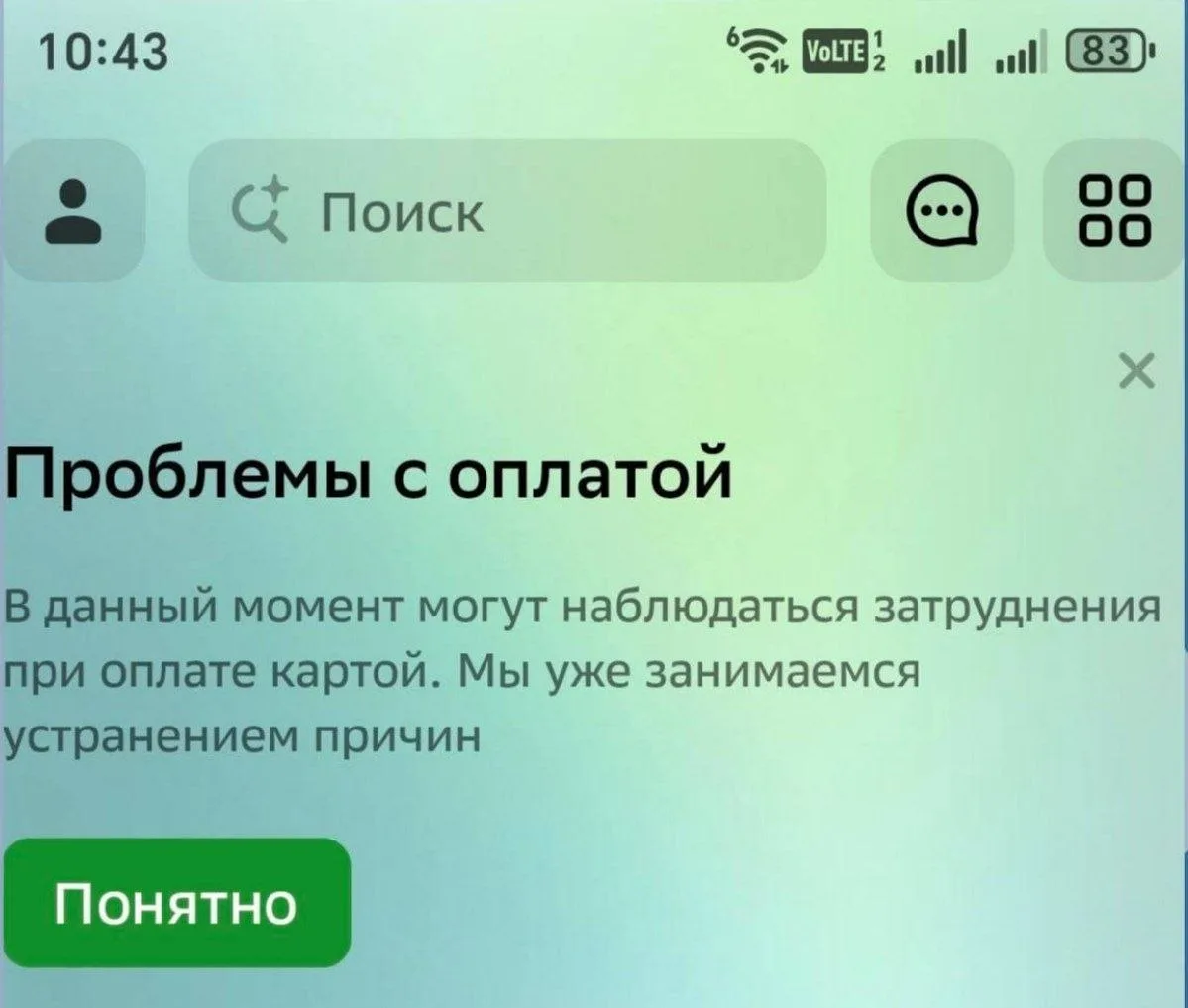 Невозможно оплатить покупки ни картой, ни через QR-код. Также не работают банкоматы и терминалы.