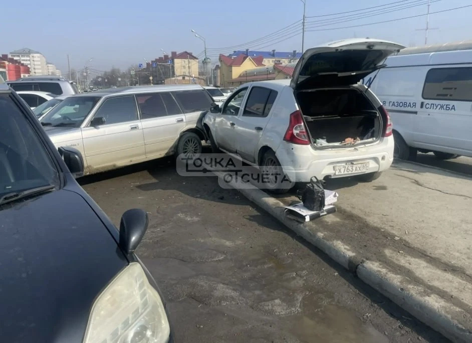 В жёсткую аварию на парковке у ТЦ "Альянс" 26 марта попали четыре автомобиля. Хэтчбек, который протаранил припаркованные иномарки, внезапно выехал на встречку, а после на тротуар.