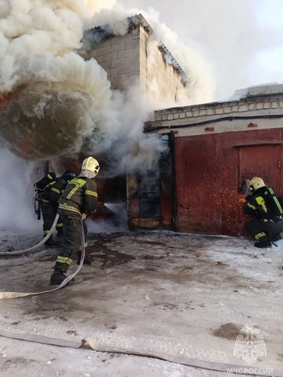 🔥 Пожарные потушили возгорание на Московском шоссе. Огонь охватил двухэтажный гараж в кооперативе «Авторемонтник».
