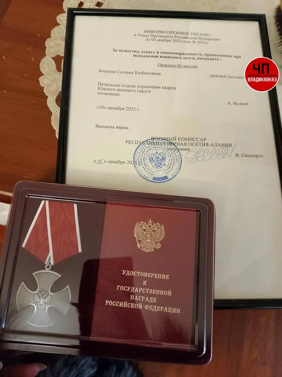 🎖Участника СВО из Северной Осетии посмертно наградили орденом Мужества