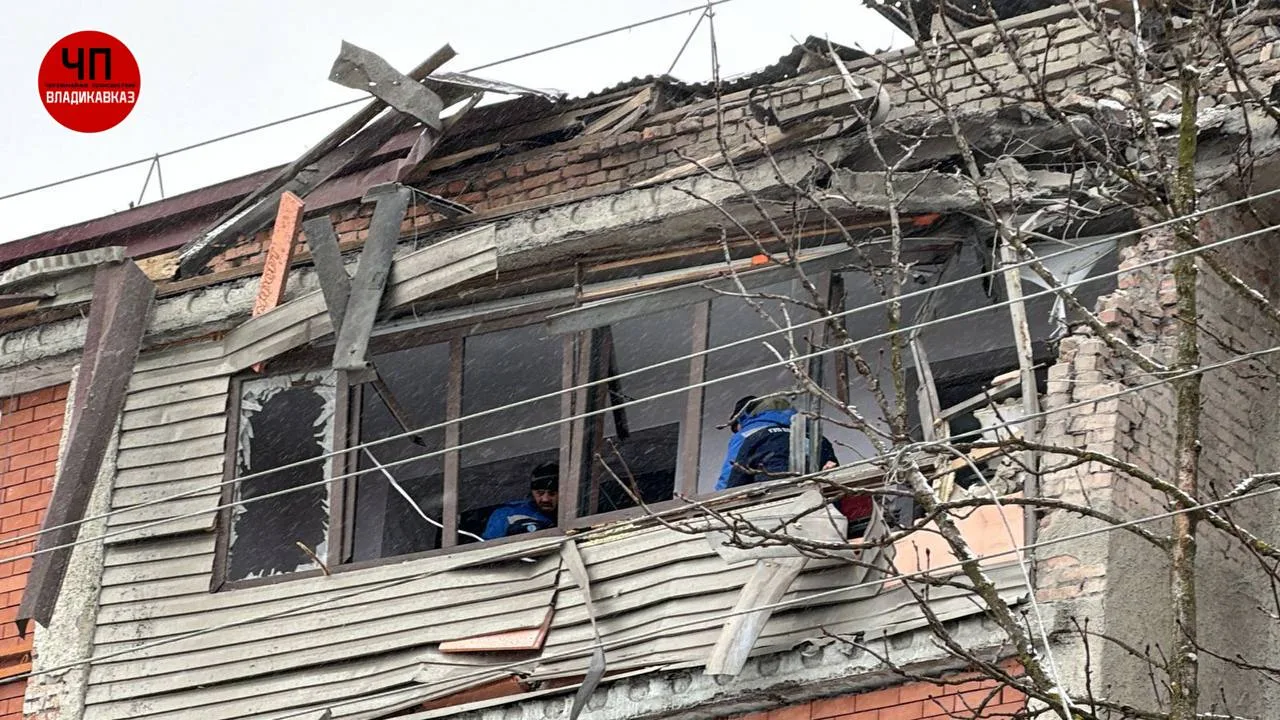 ❗️❗️❗️❗️❗️❗️Обстановка около дома в Беслане, пострадавшего от падения обломков БПЛА.