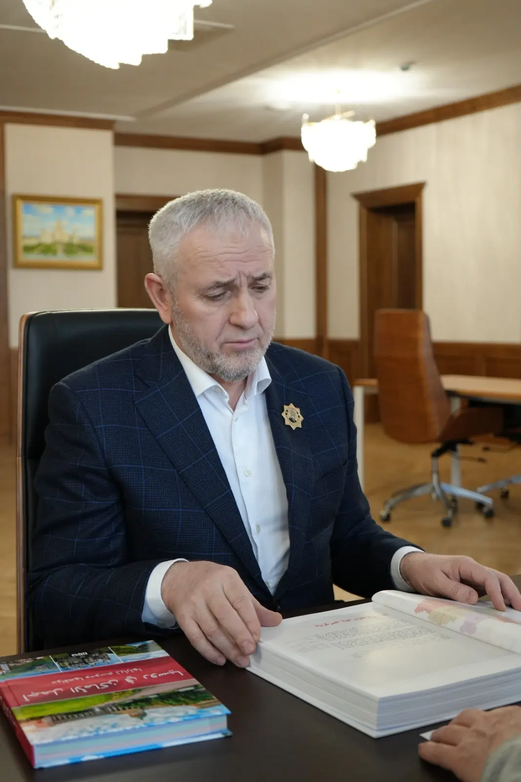 Также у Руководителя Администрации Главы и Правительства ЧР Галаса Таймасханова сегодня состоялась рабочая встреча с Председателем союза писателей ЧР Аламахадом Ельсаевым.