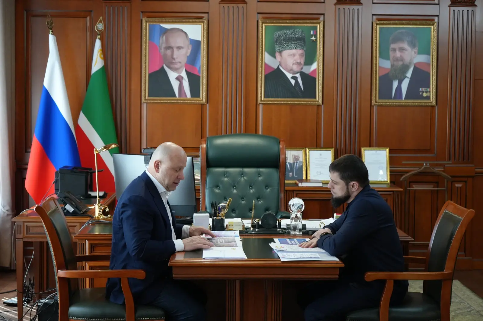 Сегодня состоялась рабочая встреча Руководителя Администрации Главы и Правительства ЧР Галаса Таймасханова с заместителем Председателя Правительства ЧР – министром ЧР по национальной политике, внешним связям, печати и информации Ахмедом Дудаевым.