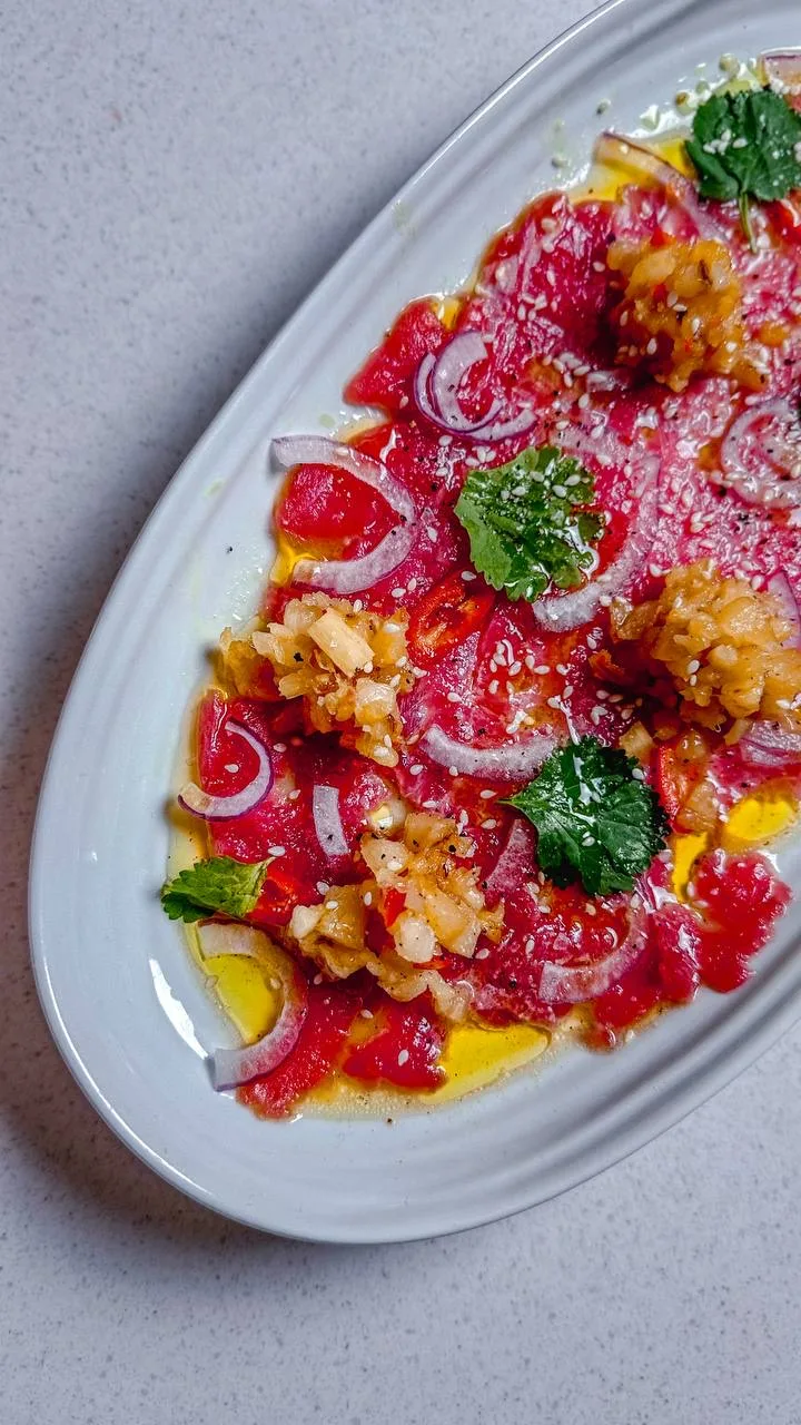 Ну и сочетание на миллион с карпаччо: хорошее мясо и хрустящая флер де сель. Б- баланс.