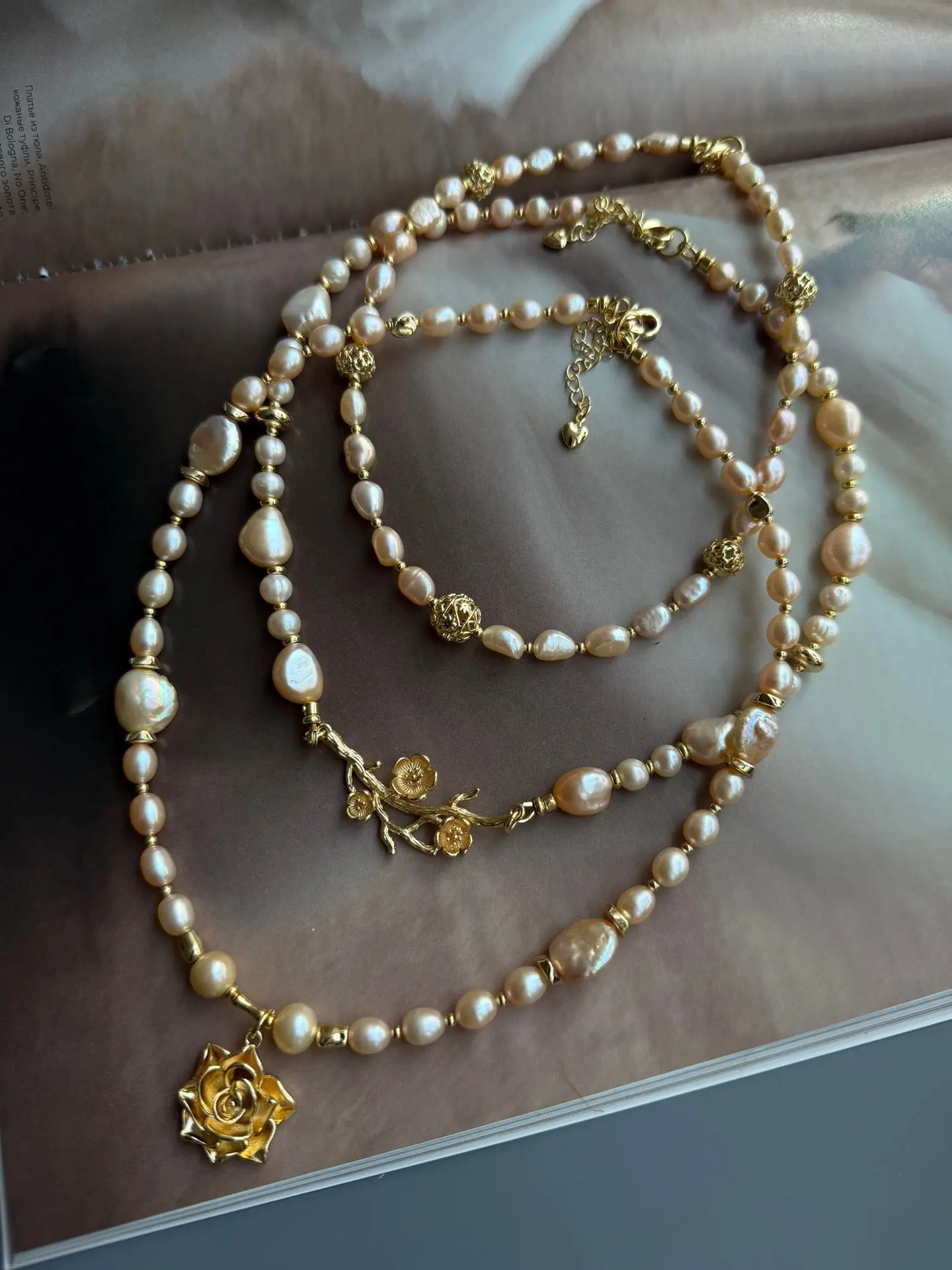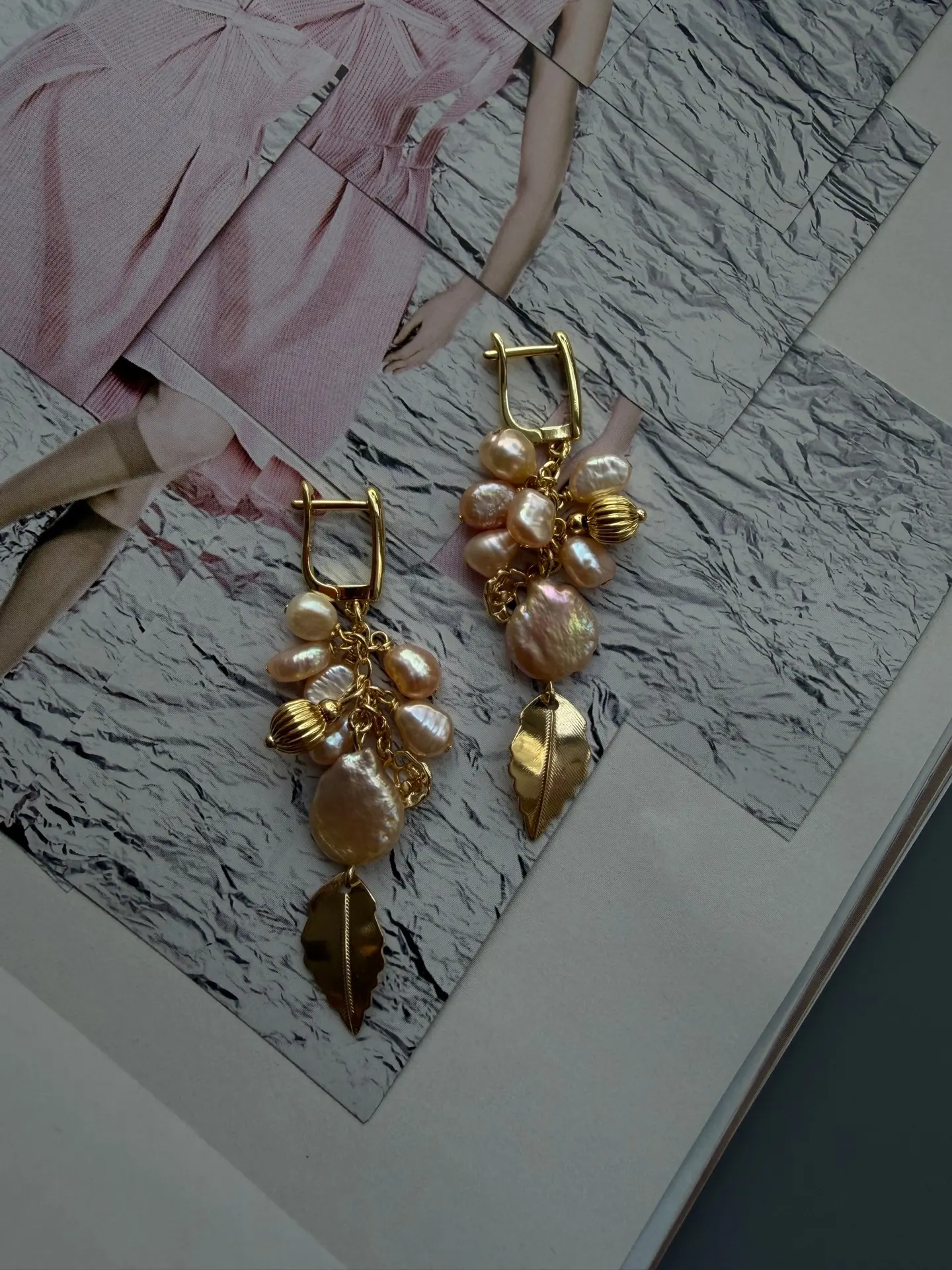 Состав : натуральный жемчуг, барочный жемчуг Металл фурнитуры - сплав на основе латуни с позолотой