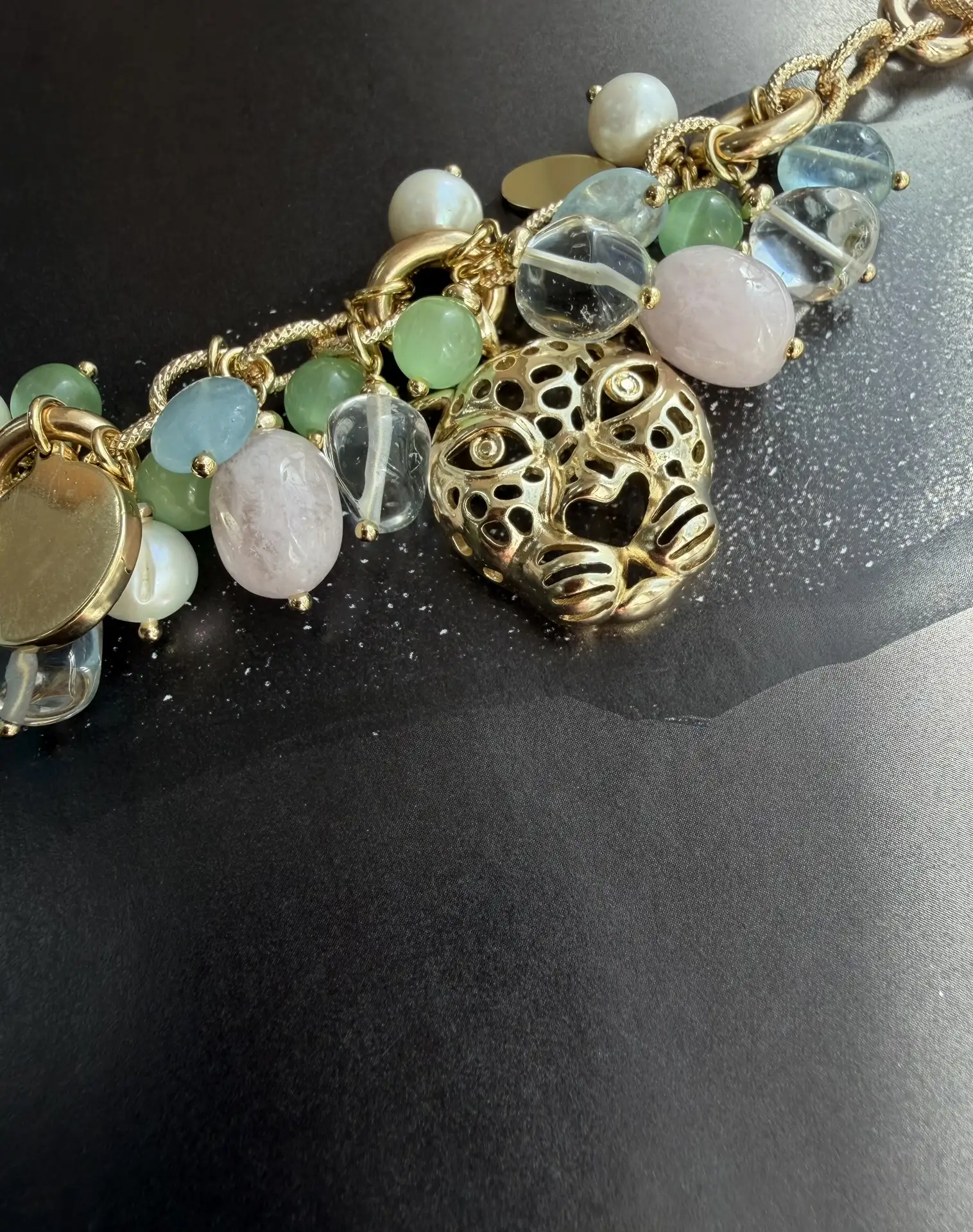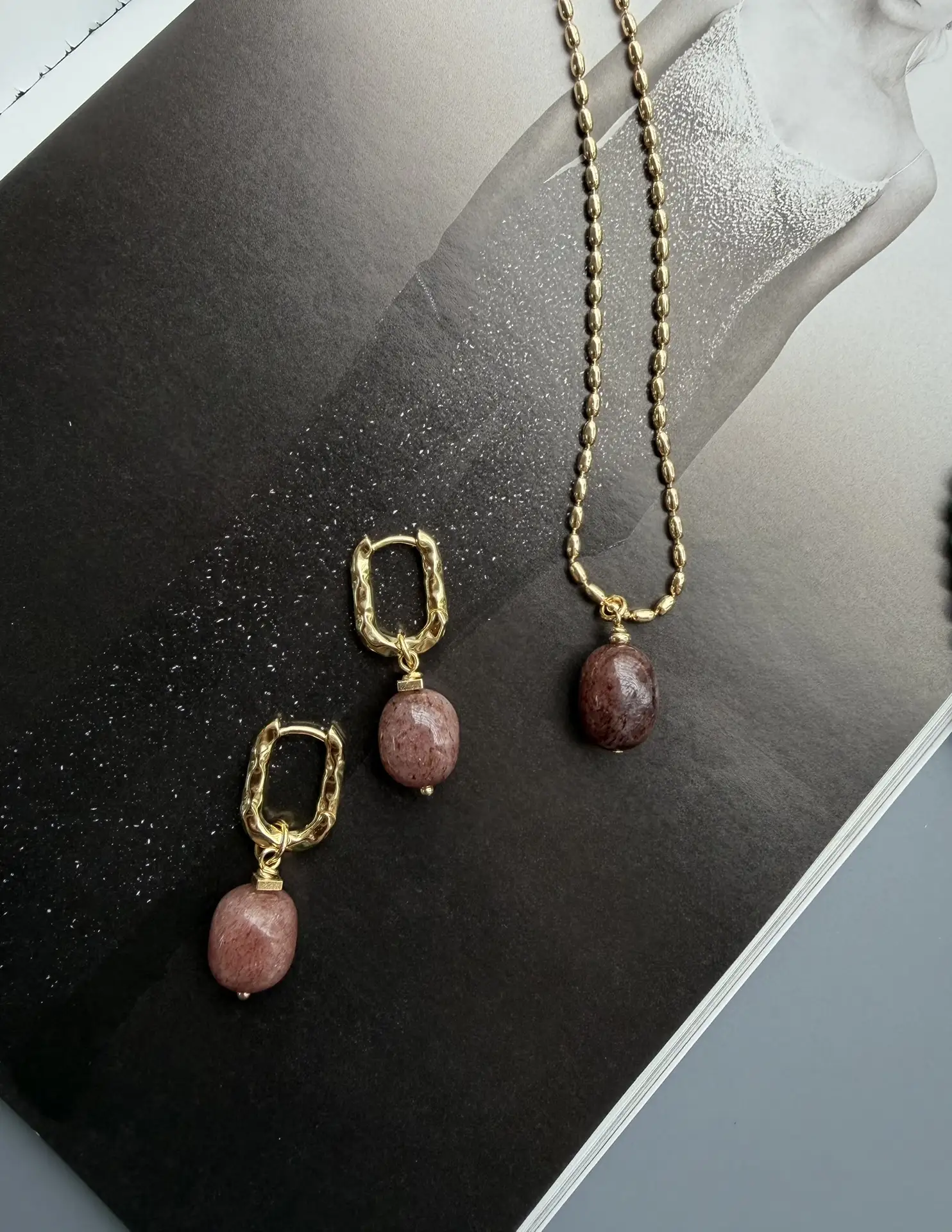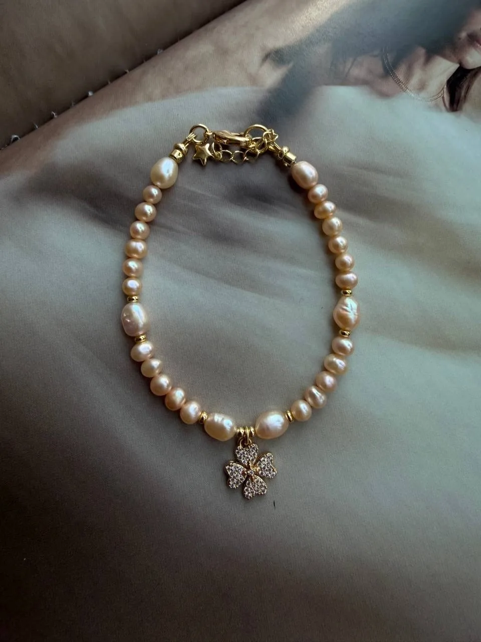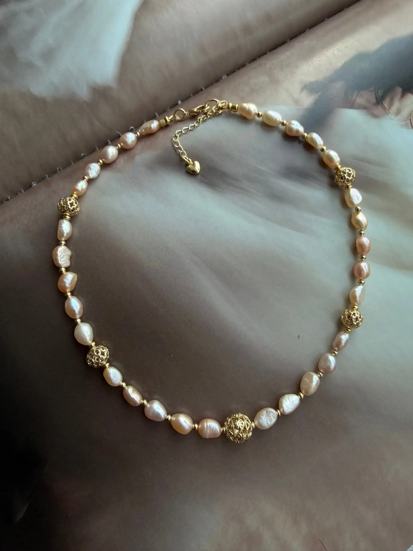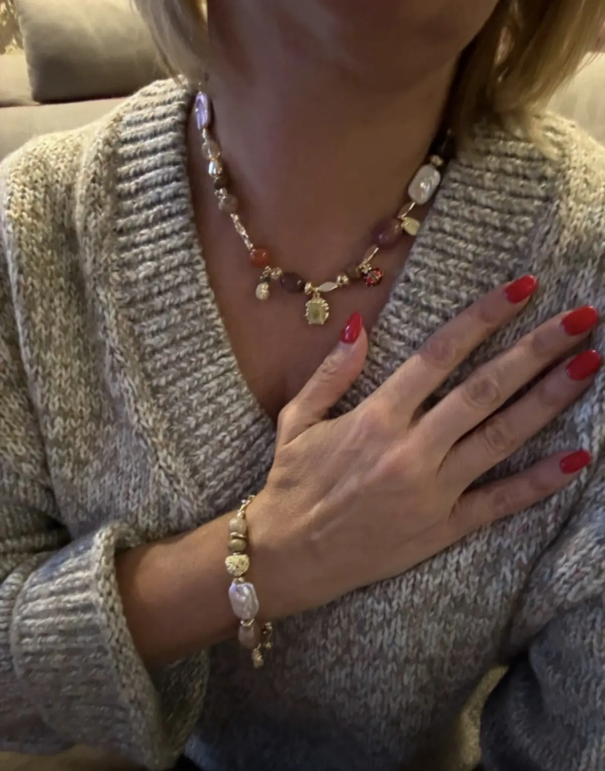 Натуральный жемчуг, клубничный кварц , цитрин, агат