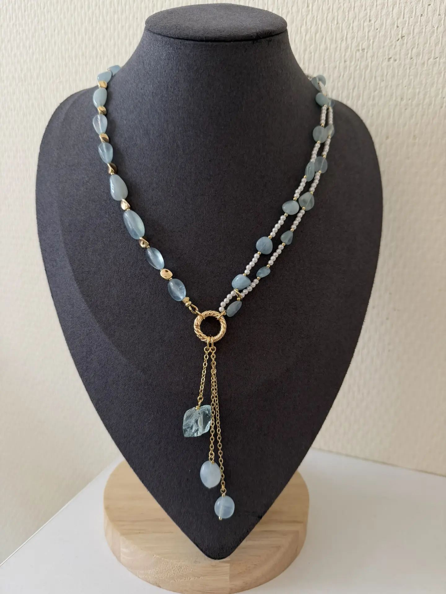 Состав : аквамарин, жемчуг - майорка, аквакварц