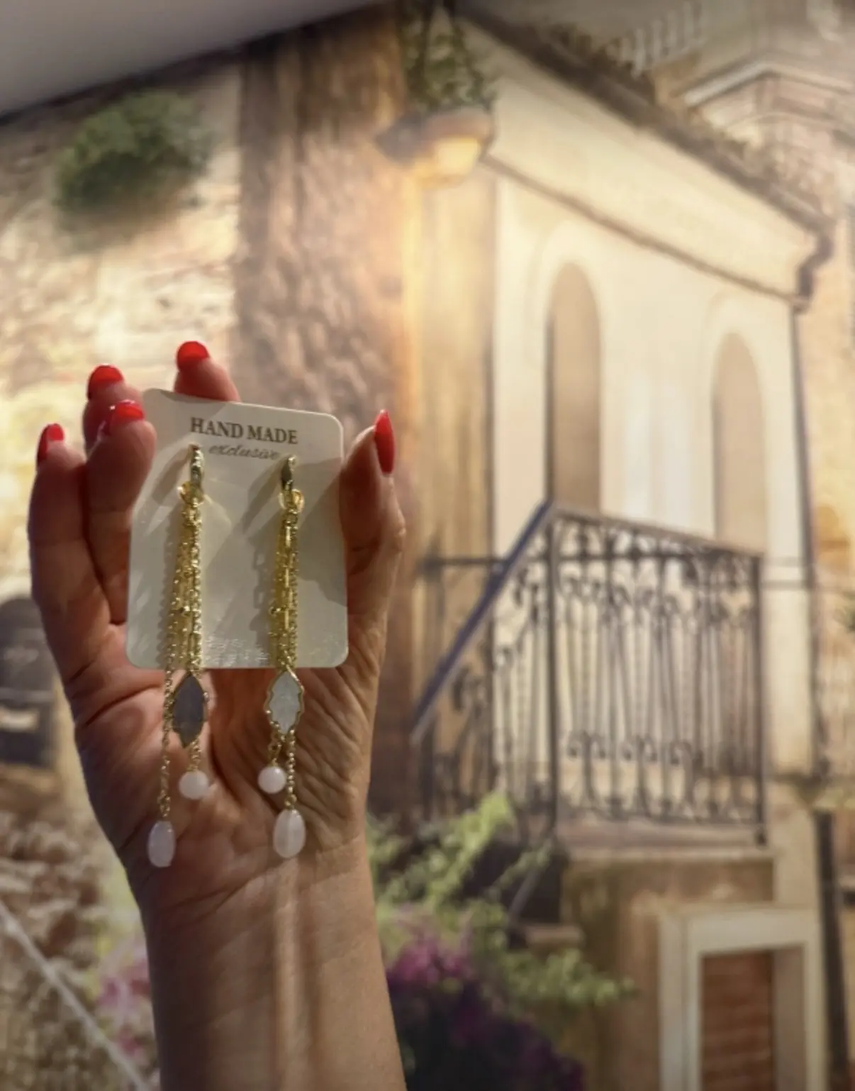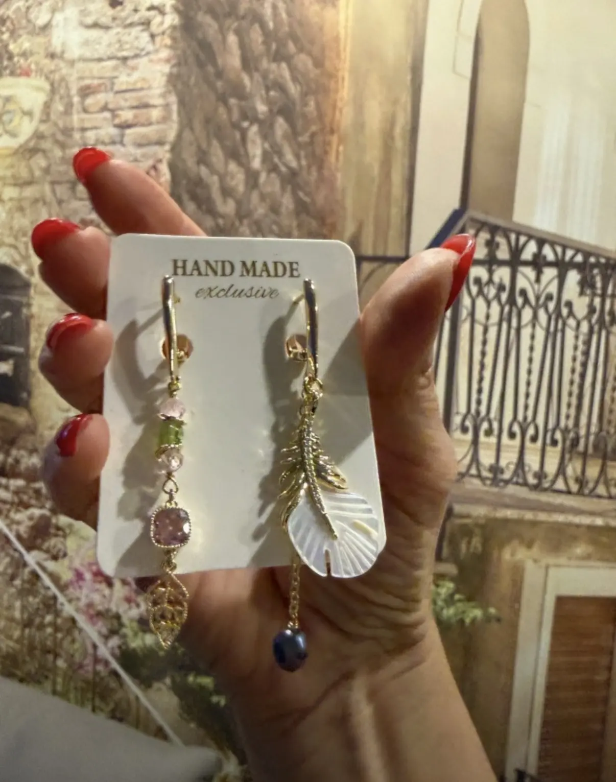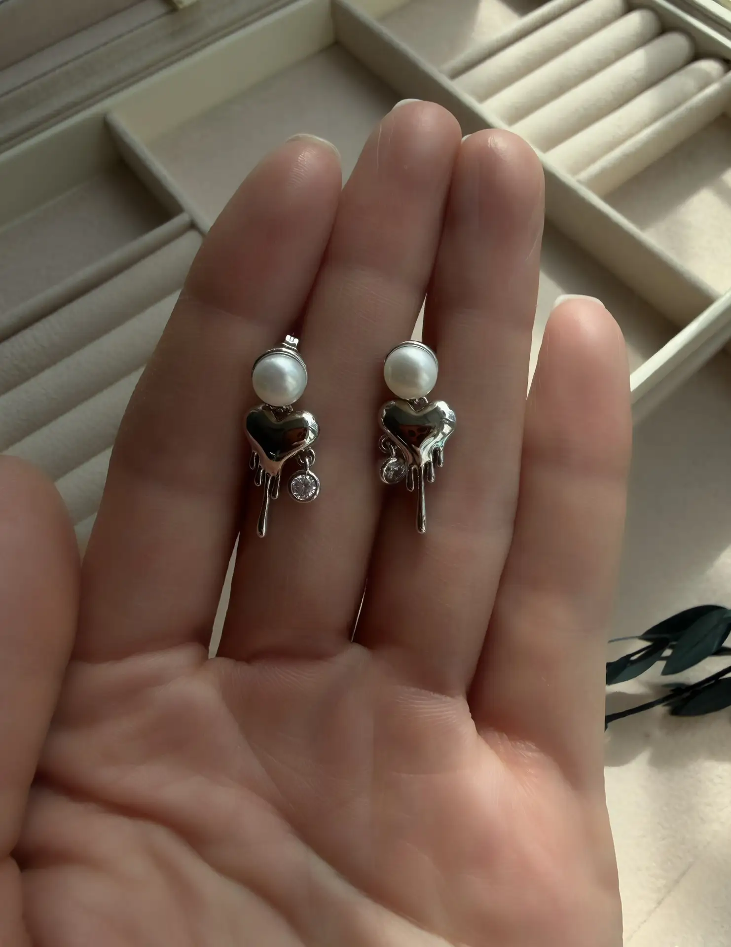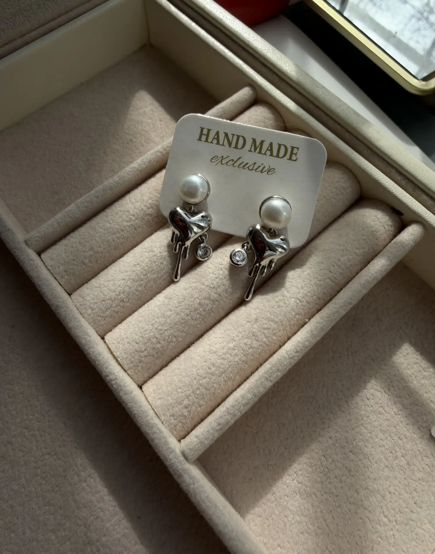 В основе сережек латунные гвоздики с родиевым (гипоаллергенным) покрытием.