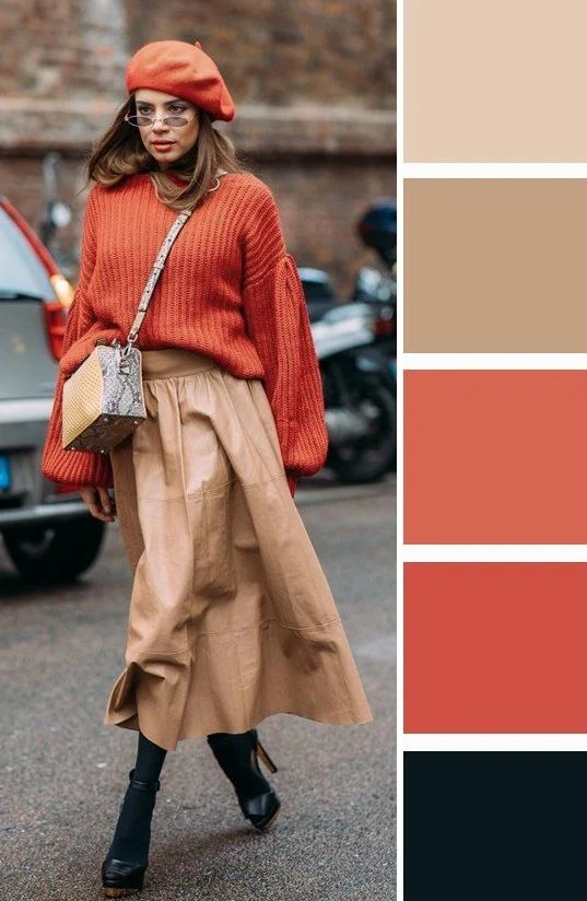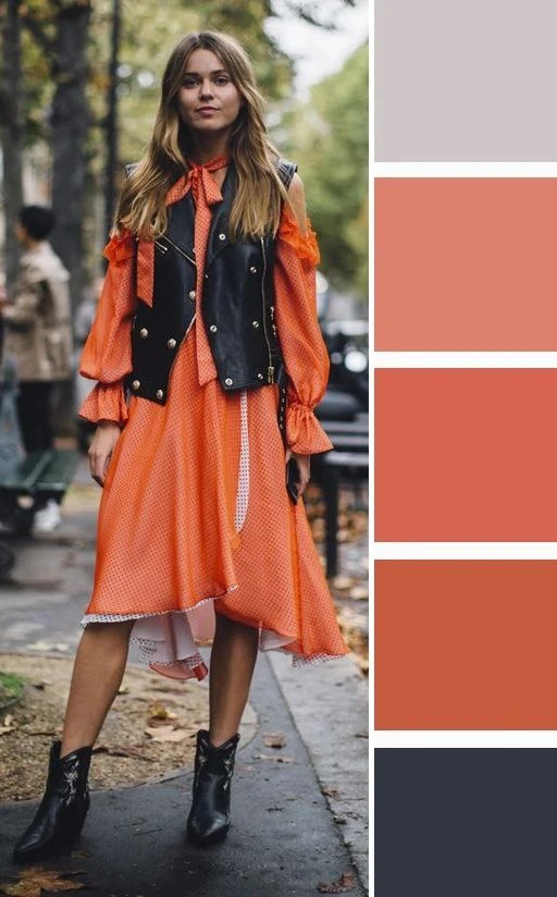 Красно-оранжевые морковные оттенки — яркие, сочные тона, которые отражают приподнятое настроение и активную позицию в жизни. Сочетать их можно с бежевым, серым, сиреневым, чёрным. А какой вариант нравится вам?