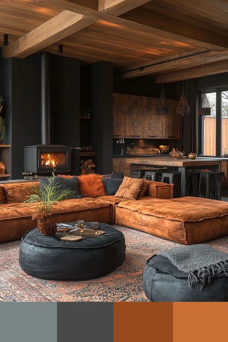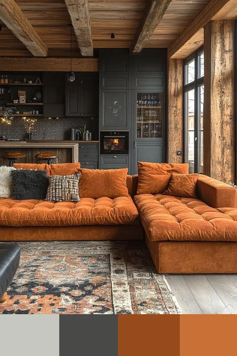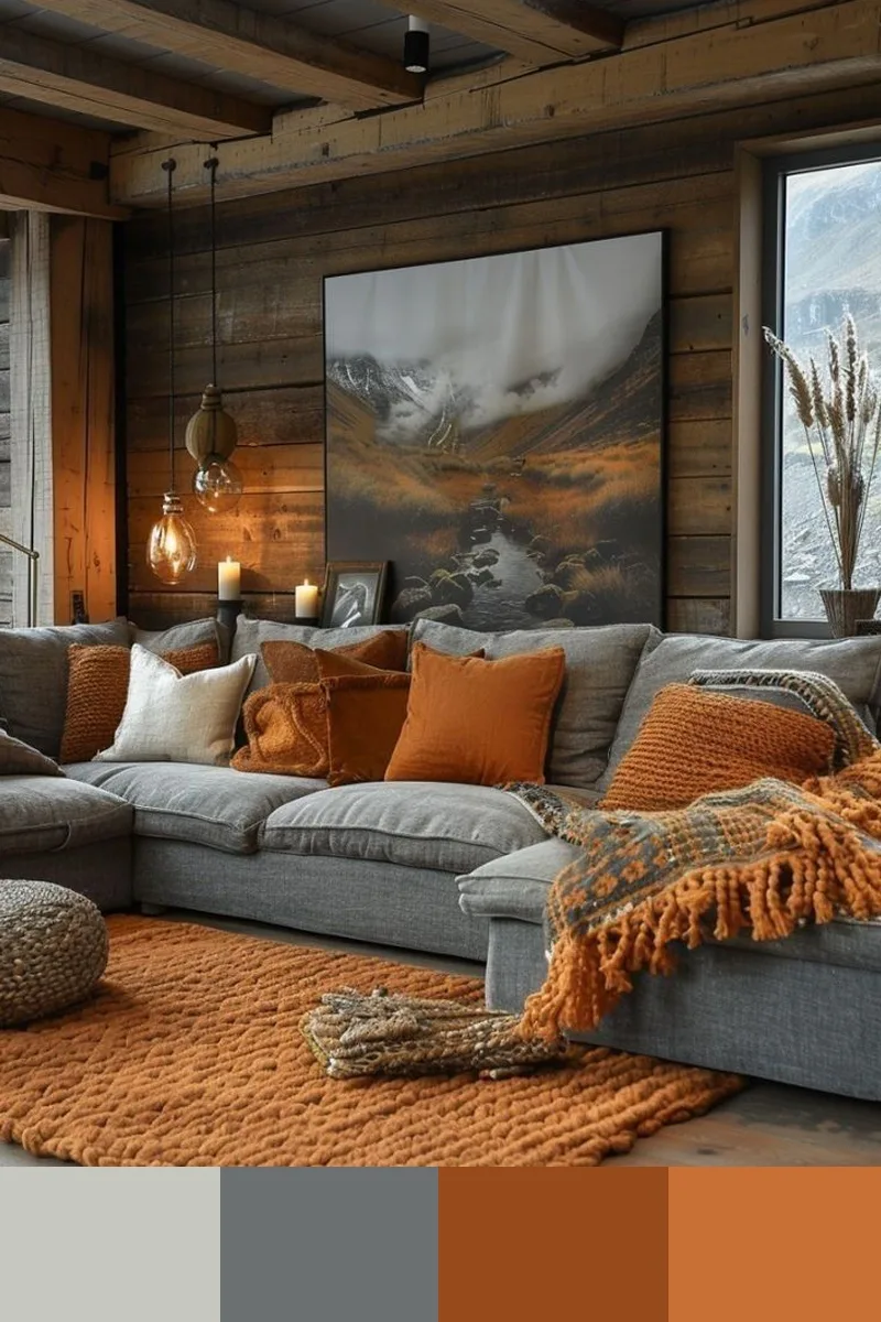 Оранжевые и серые оттенки в интерьере создают идеальный баланс между энергией и спокойствием: серый выступает благородным фоном, приглушающим излишнюю активность оранжевого, а оранжевый, в свою очередь, наполняет пространство теплом, солнечным светом и жизнерадостностью. Дополнить палитру можно бежевым и коричневым.
