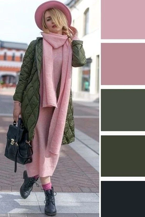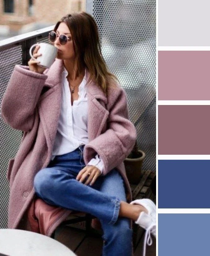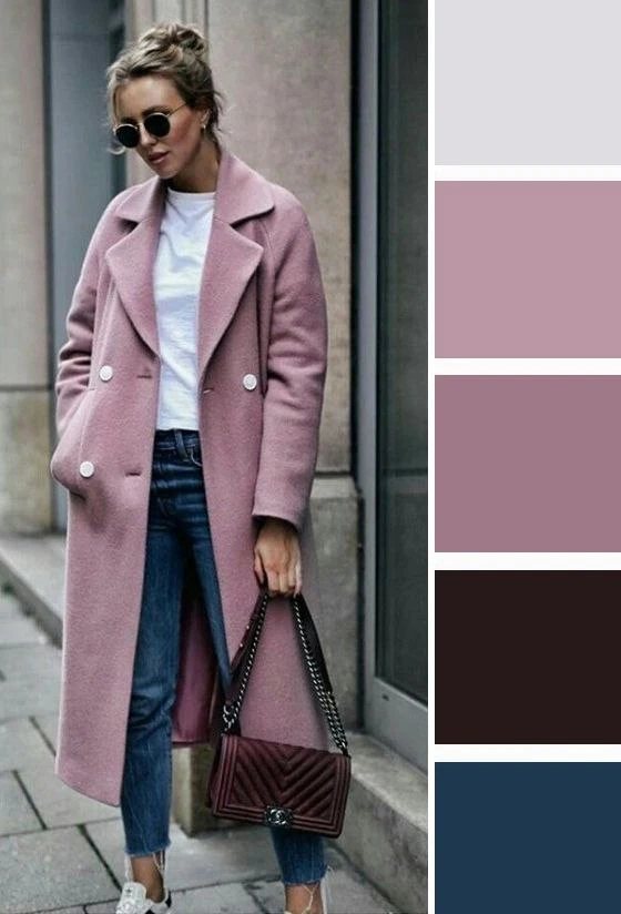 Пепельно-розовый цвет одежды выглядит благородно и мило. Его можно комбинировать с белым, синим, бледно-жёлтым, палевым и чёрным. Какой вариант нравится вам?
