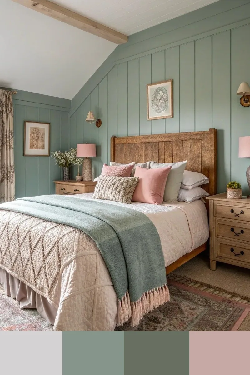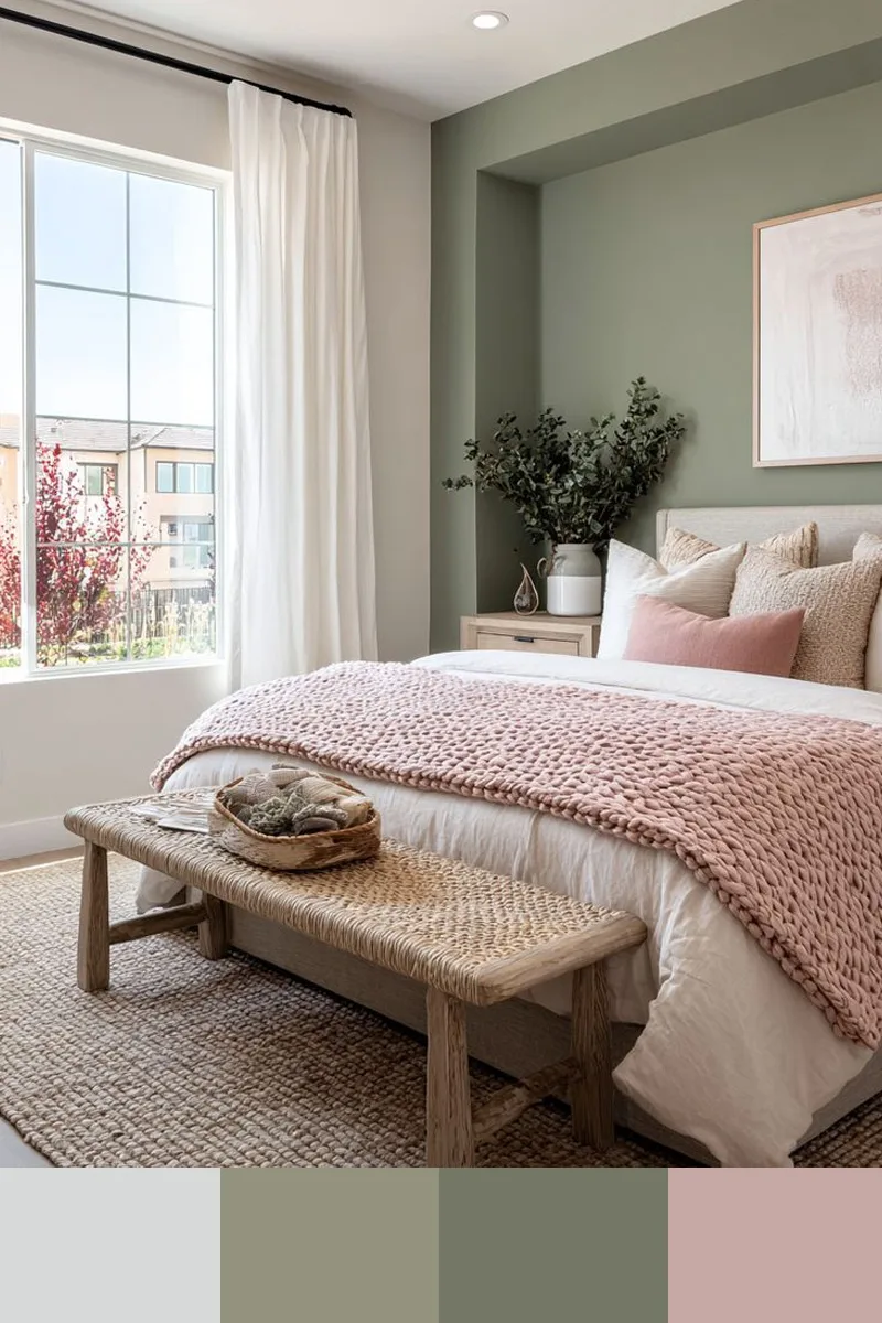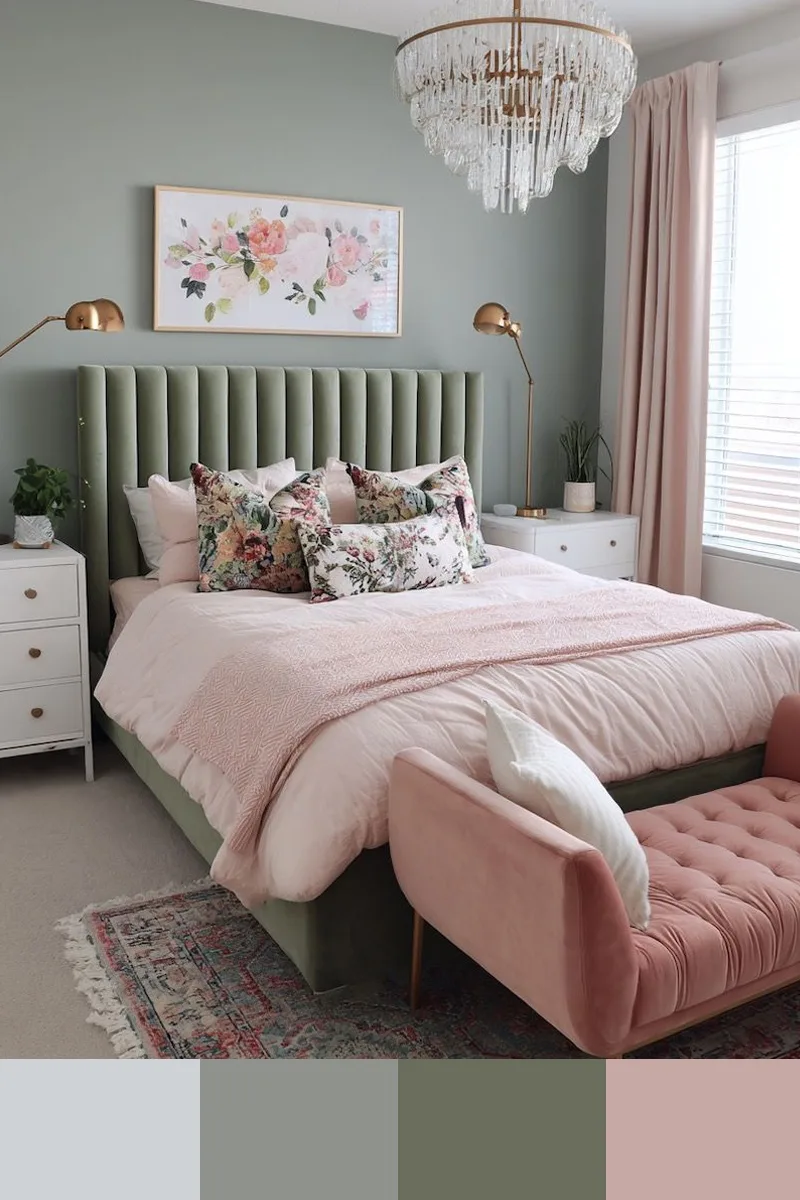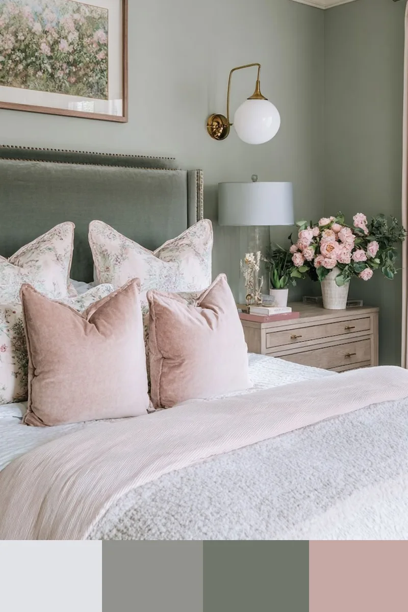 Нежный, очень светлый розовый и мягкий зеленый в интерьере создают ощущение воздушной прозрачности и едва уловимого весеннего дыхания. Этот почти акварельный розовый, напоминающий лепестки цветущей сакуры на рассвете или первый румянец на облаке, не перегружает пространство, а лишь слегка окрашивает его теплом, делая стены или текстиль визуально невесомыми. В паре с мягким зеленым он образует самый деликатный из возможных контрастов: очень светлый розовый дарит нежность и романтику, а мягкий зеленый — прохладу и гармонию. Дополнить палитру можно белым, бежевым.