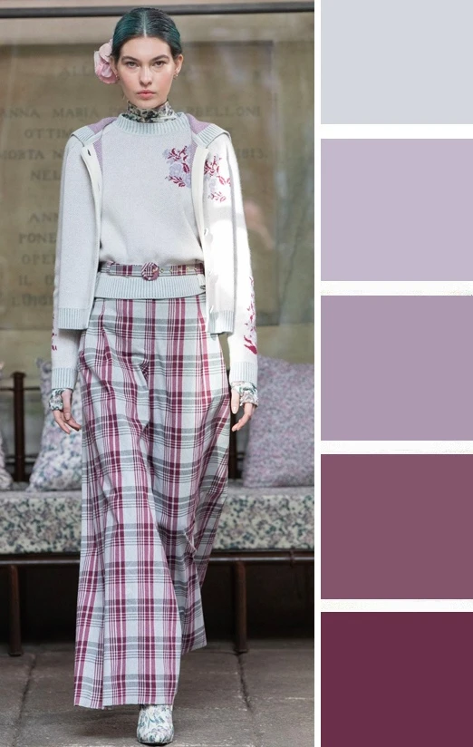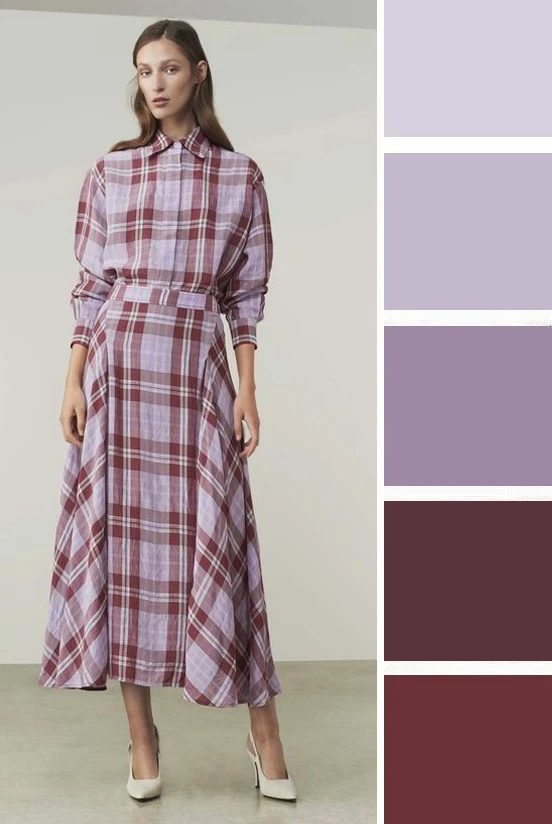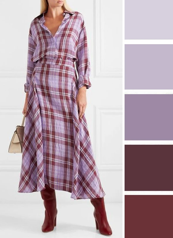 Светло-сиреневый и бордовые оттенки — это сочная и необычная комбинация, которая выглядит гармонично и контрастно. Дополнить палитру можно белым, серым, бежевым.