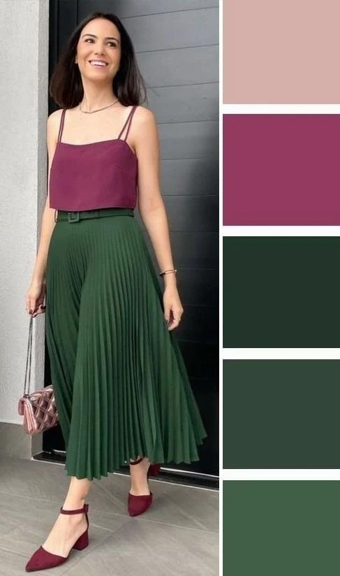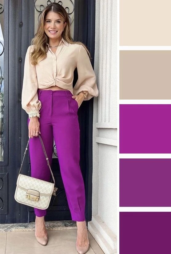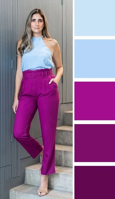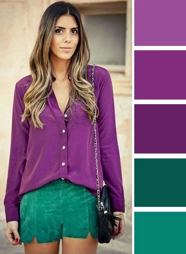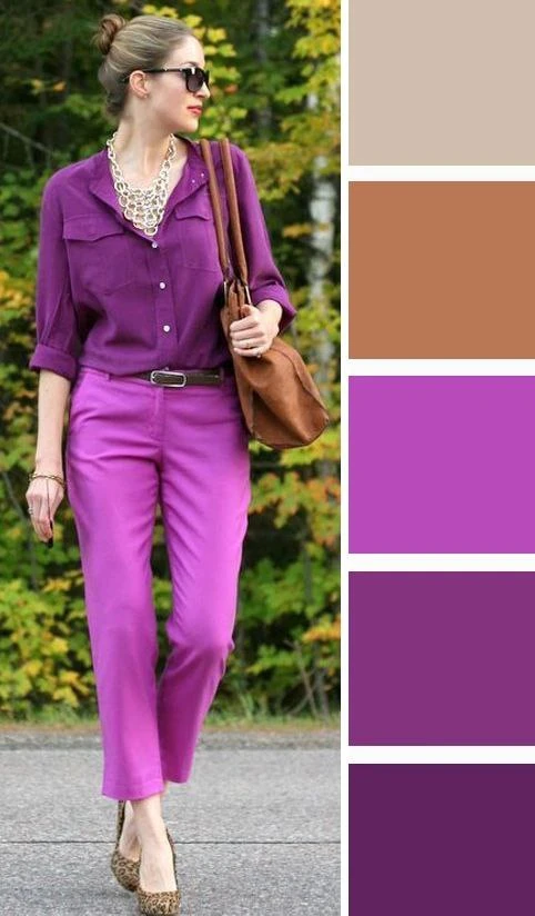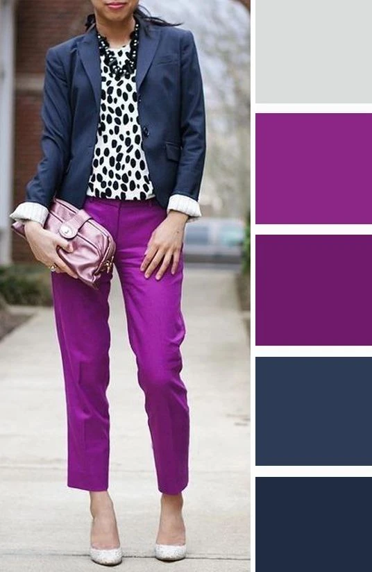 Яркие пурпурные оттенки могут стать стильным акцентом в одежде. Особенно хорошо он смотрится с кремовым, голубым, тёмно-синим, фуксией и изумрудным. А вам какой вариант нравится больше?