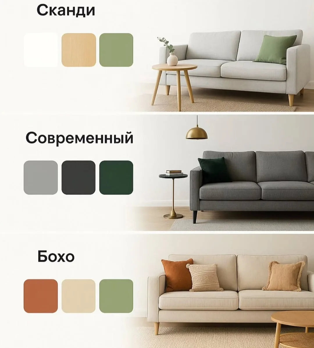 Светло-зеленые фисташковые оттенки и темно-зеленая палитра — это сочетание в одной гамме, которое работает на световом контрасте. Оно освежает и тонизирует. Дополнить его можно золотым, черным, белым, бежевым.