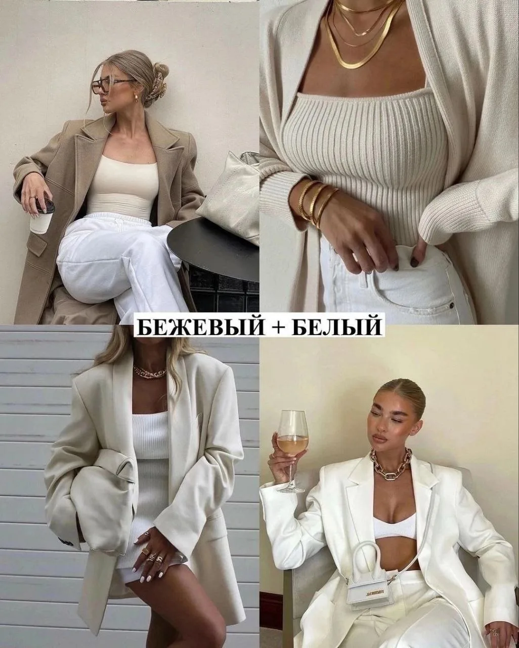 Добавила не только базовые, но и яркие сочетания в актуальных образах, поэтому смело применяйте к своему гардеробу.