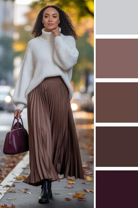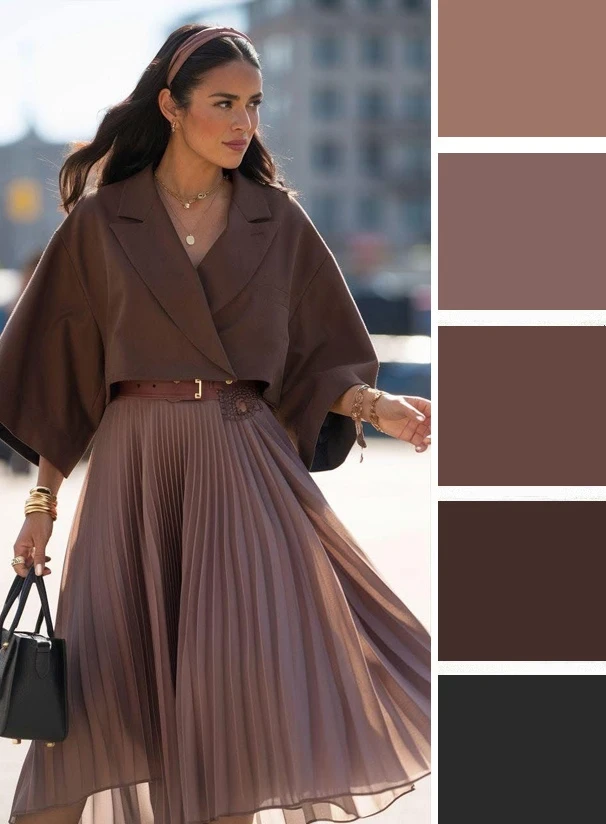 Оттенки какао в одежде выглядят вкусно и привлекательно. Их можно сочетать с серо-бежевым, тёмно-серым, бордовым, чёрным, белым и другими оттенками коричневого. А какой вариант нравится вам?