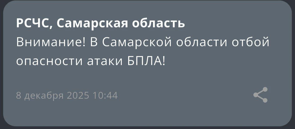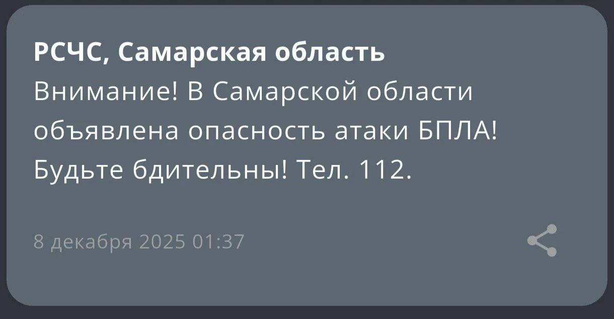 ❗️В Самарской области объявили опасность атаки БПЛА. ...