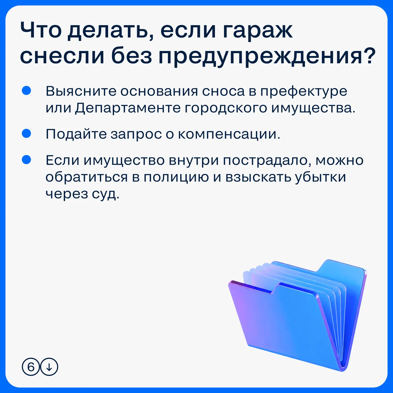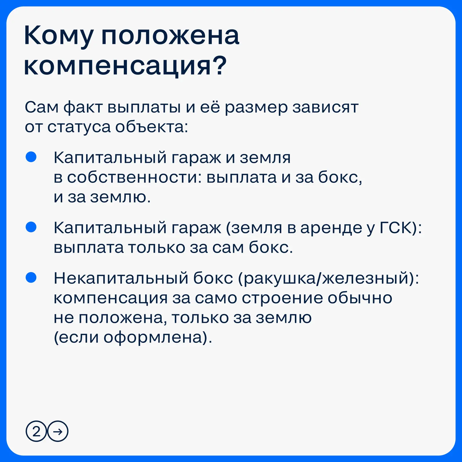 ➡️ Рассказываем, какие гаражи в зоне риска, на какую компенсацию можно рассчитывать и в каких случаях, а также как действовать, если гараж снесли без предупреждения.