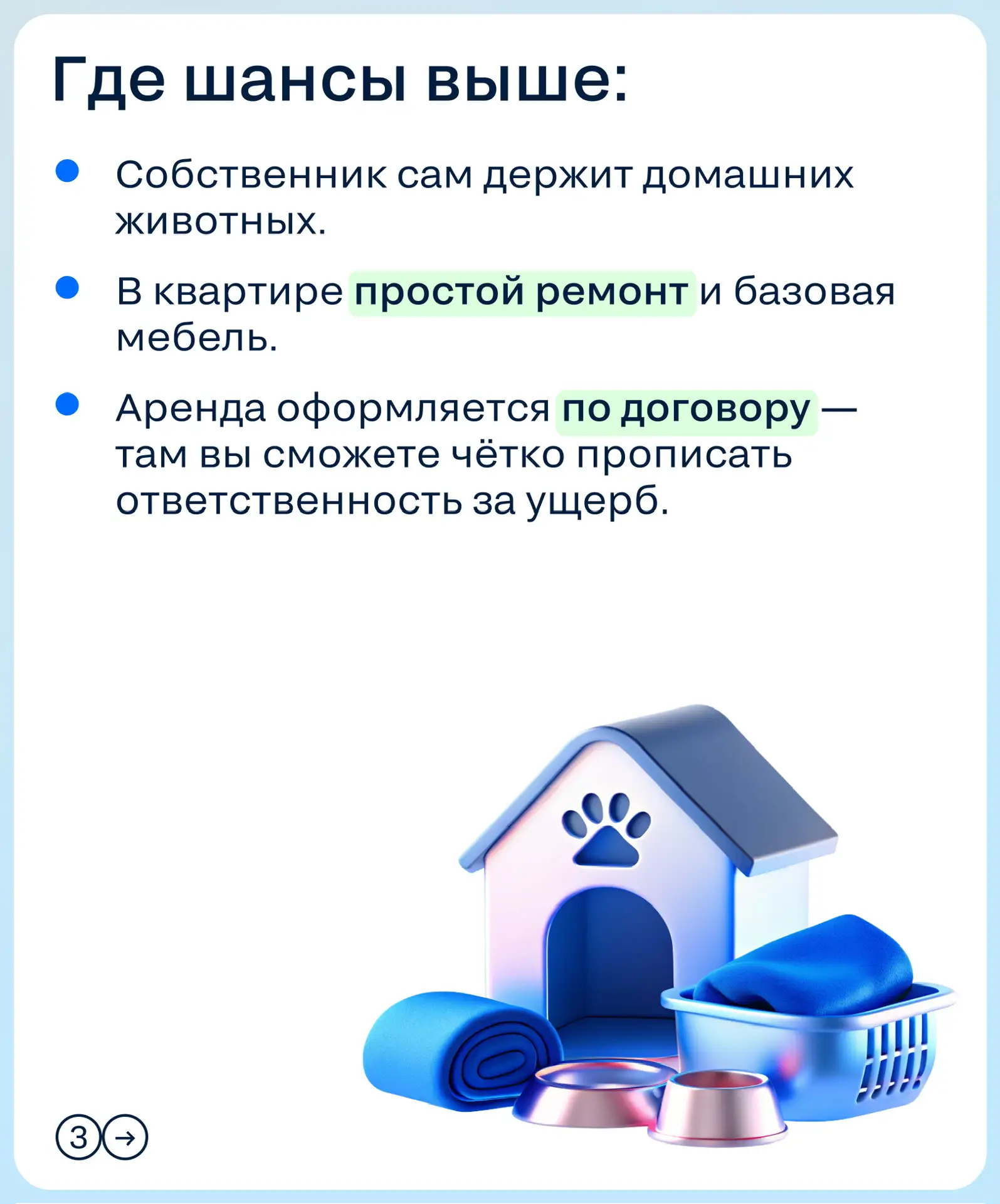 Рассказываем, как искать подходящие объявления, что повысит шансы на успех и как убедить собственника, что ваш питомец для него — не проблема.