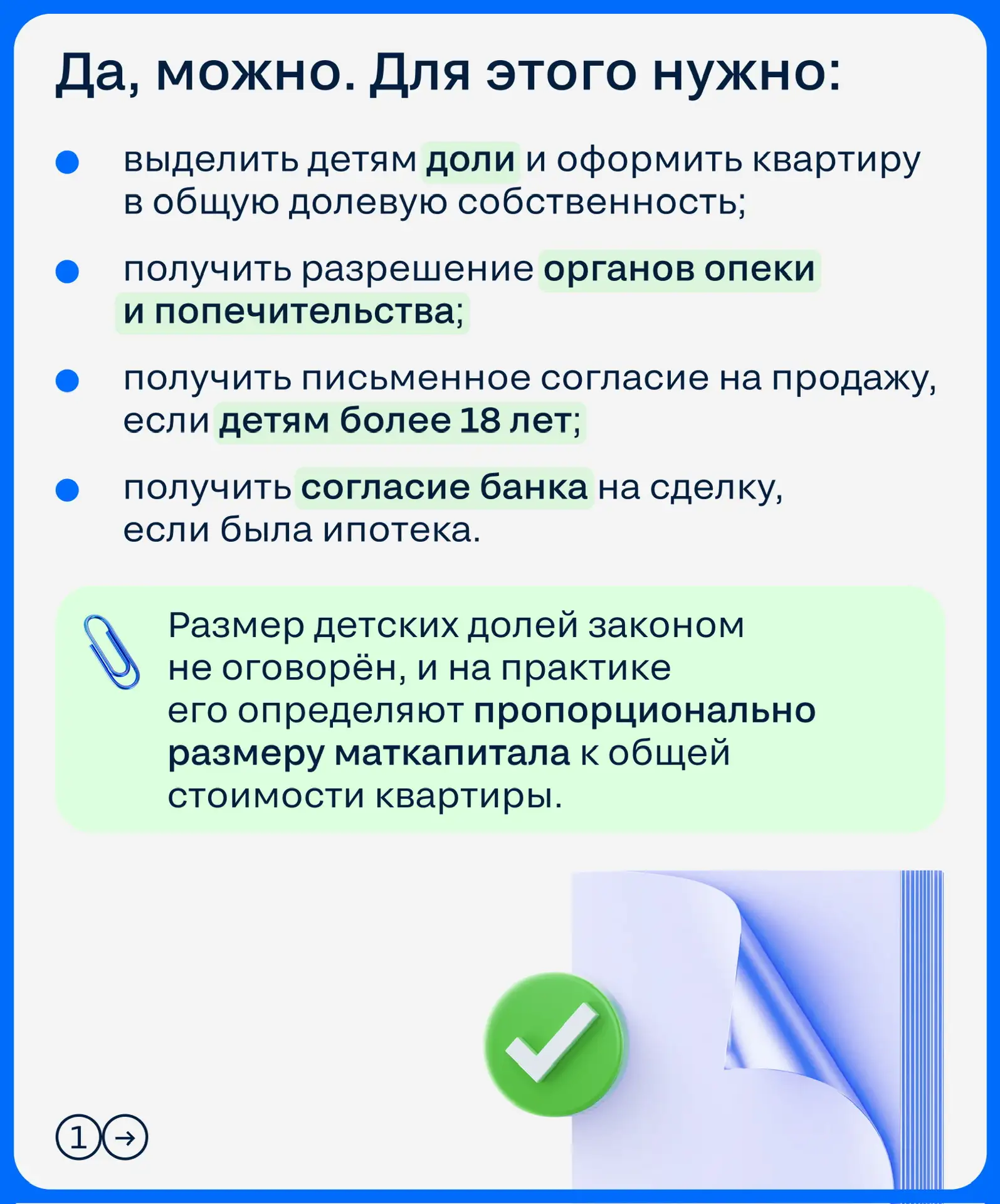 ➡️ Рассказываем, как правильно оформить доли детям, получить согласие опеки и на что еще обратить внимание перед продажей.