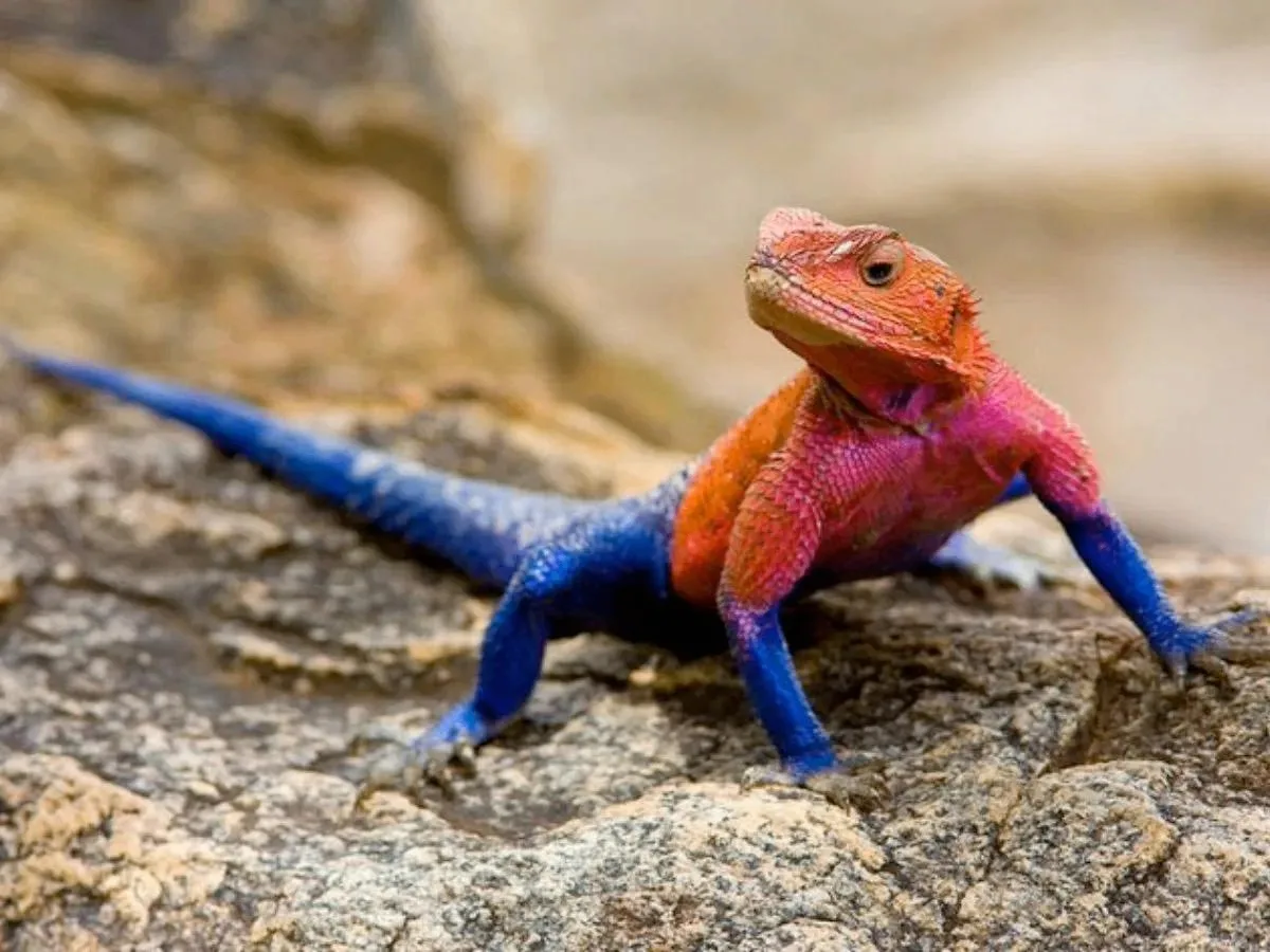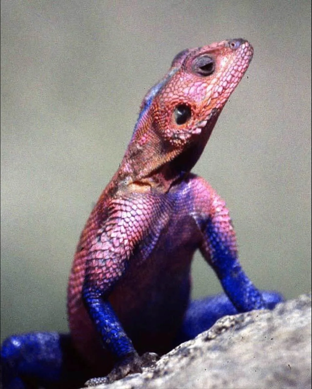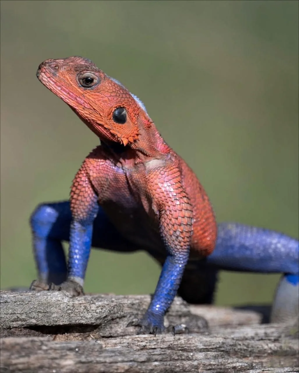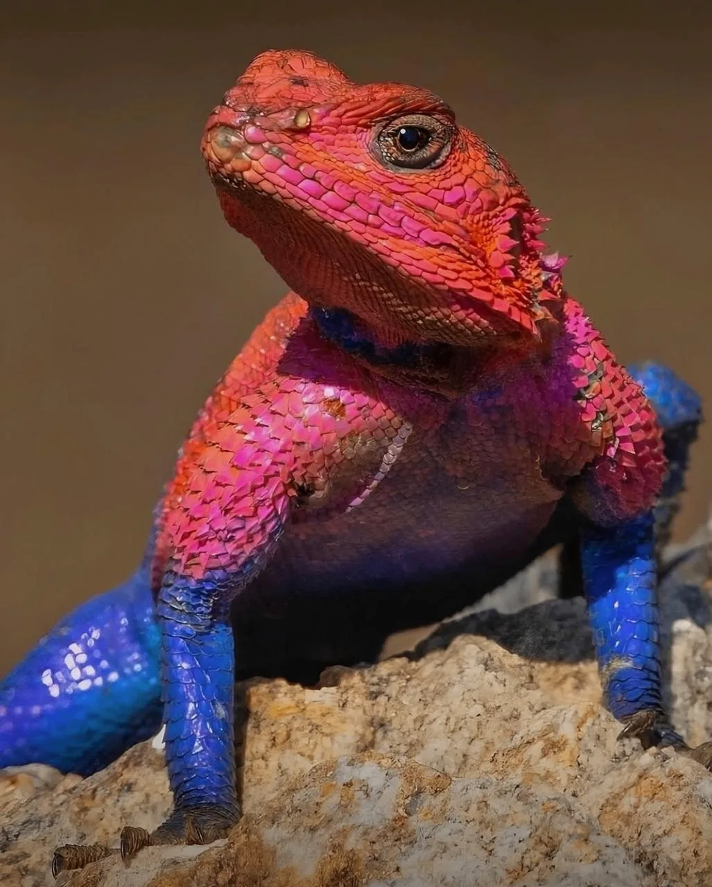 Ящерица в костюме ЧЕЛОВЕКА-ПАУКА живет в Африке — самцы вида Agama mwanzae выделяются ярко-красной головой, шеей и плечами в сочетании с тёмно-синим телом 🕷За эту уникальную расцветку их прозвали «агамой Человека-паука»