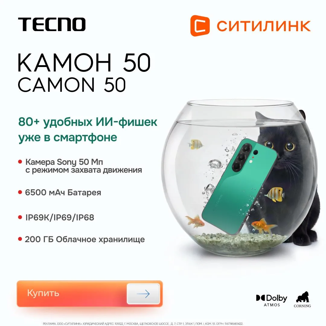 ⚡️Новинка в Ситилинке — смартфон TECNO КАМОН 50 (CAMON 50)