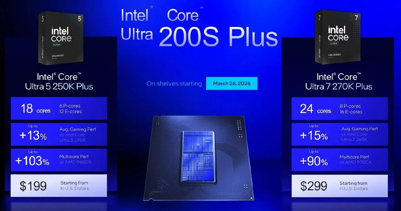 ⚡ Intel официально представила два новых процессора — Core Ultra 7 270K Plus и Core Ultra 5 250K Plus
