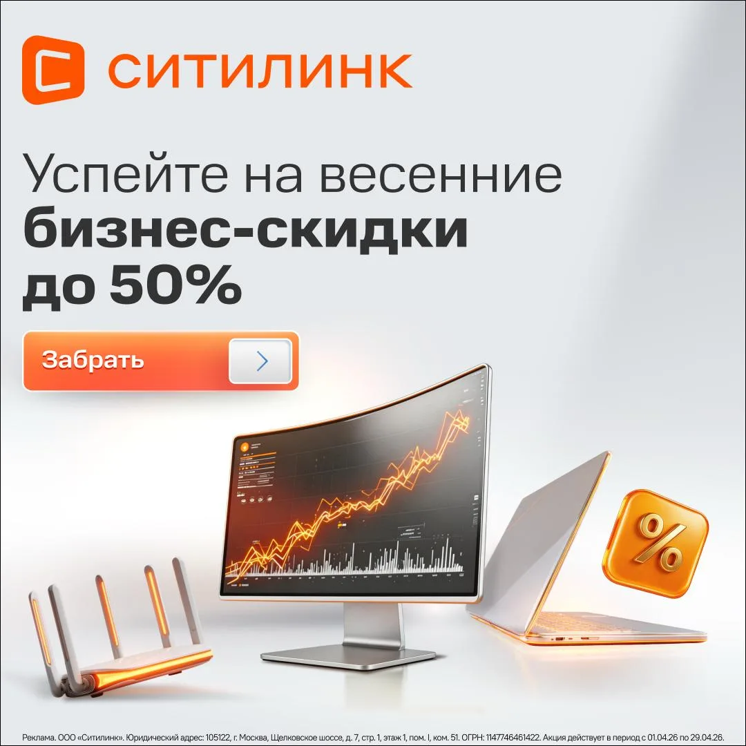 Скидки до 50% на всё, что нужно для работы: офисная техника, ПК, ноутбуки, мониторы и не только.