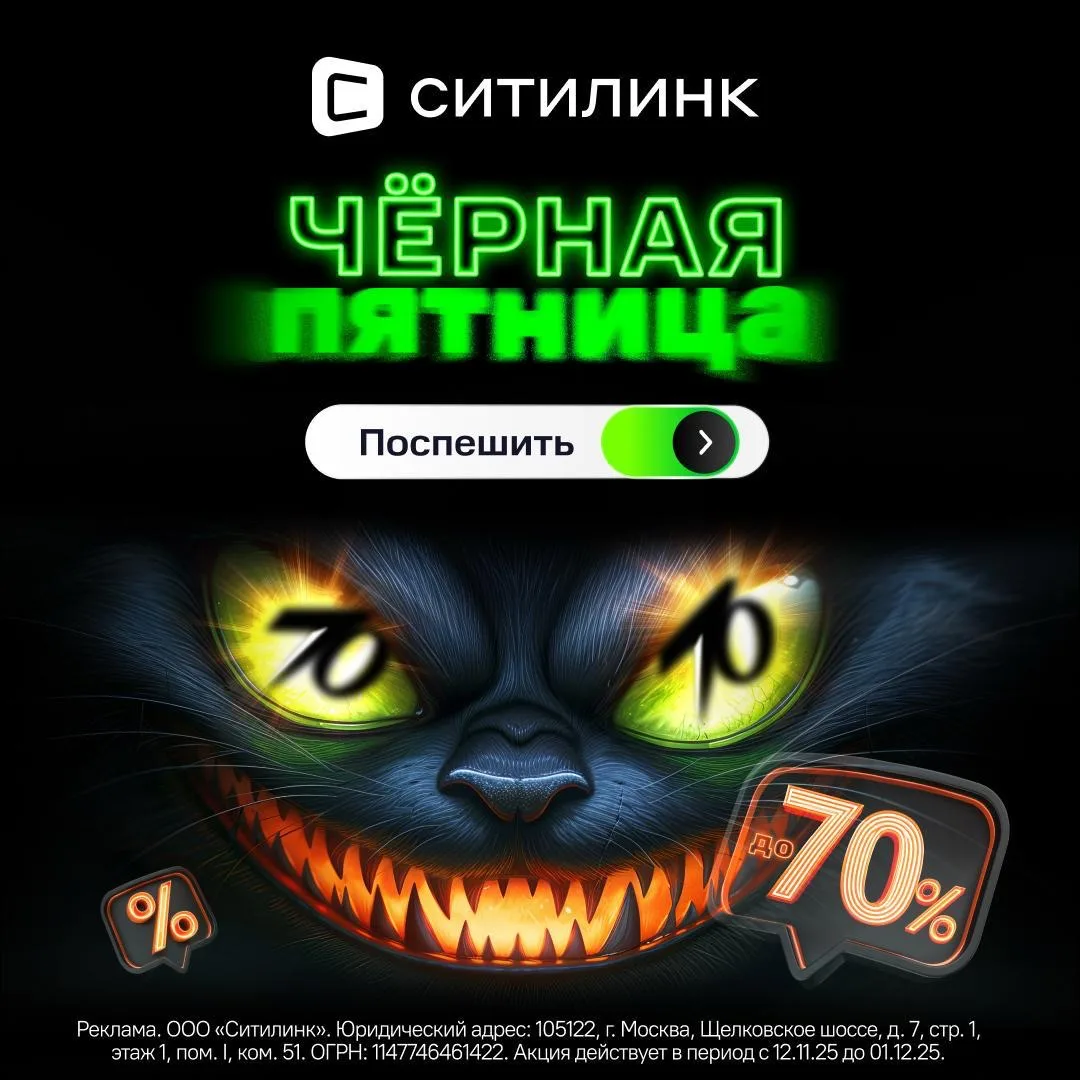 В «Ситилинке» — Черная пятница со скидками до 70% на гаджеты, электронику и подарки к Новому году.