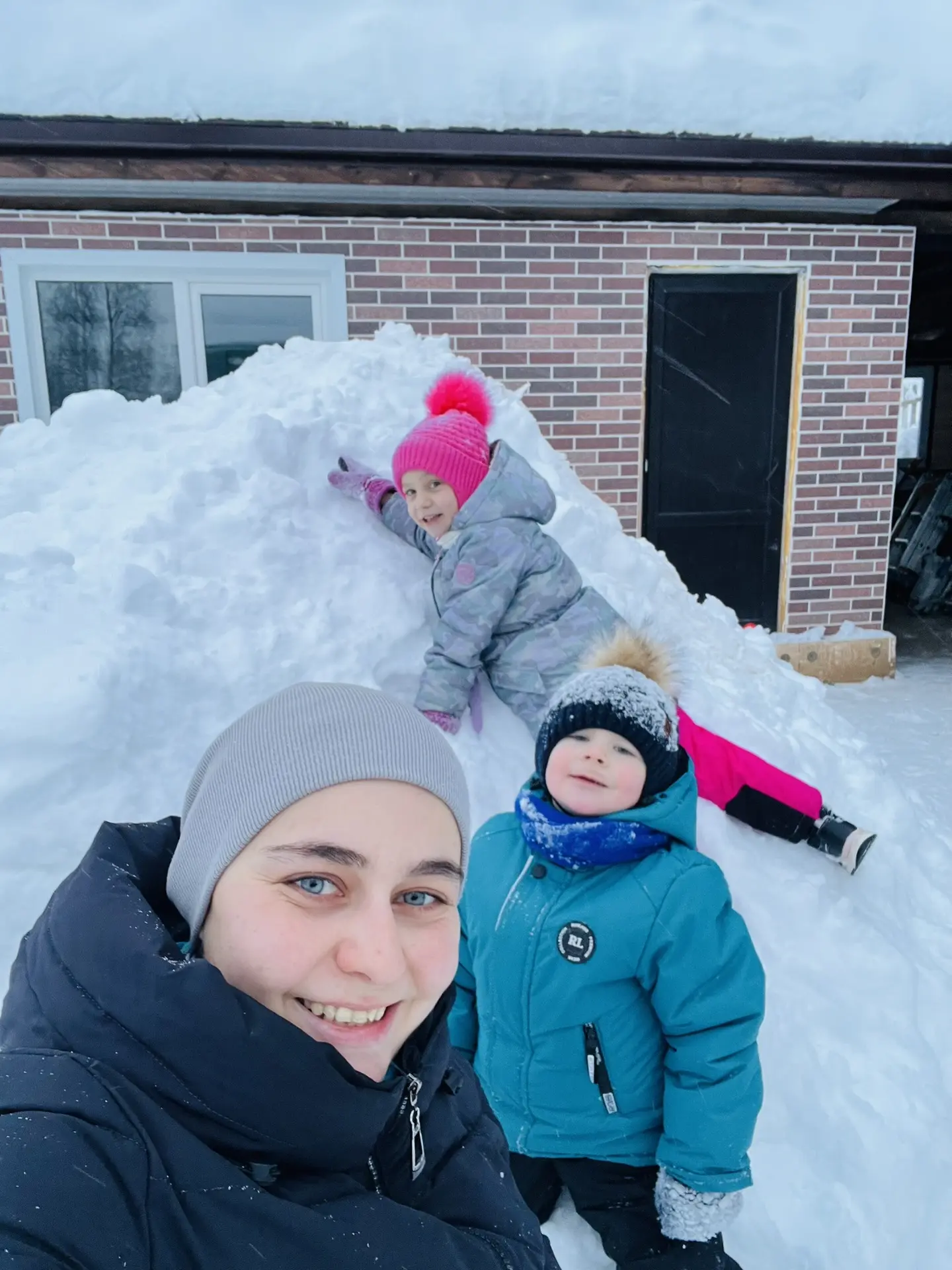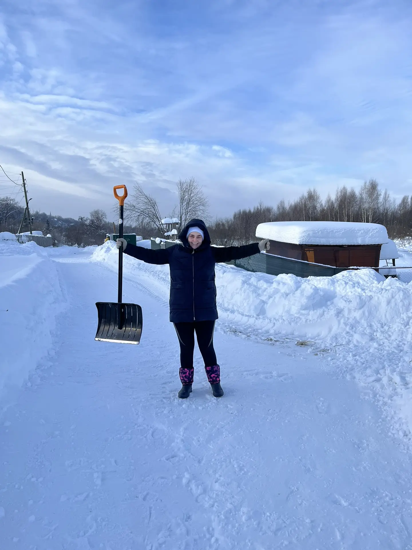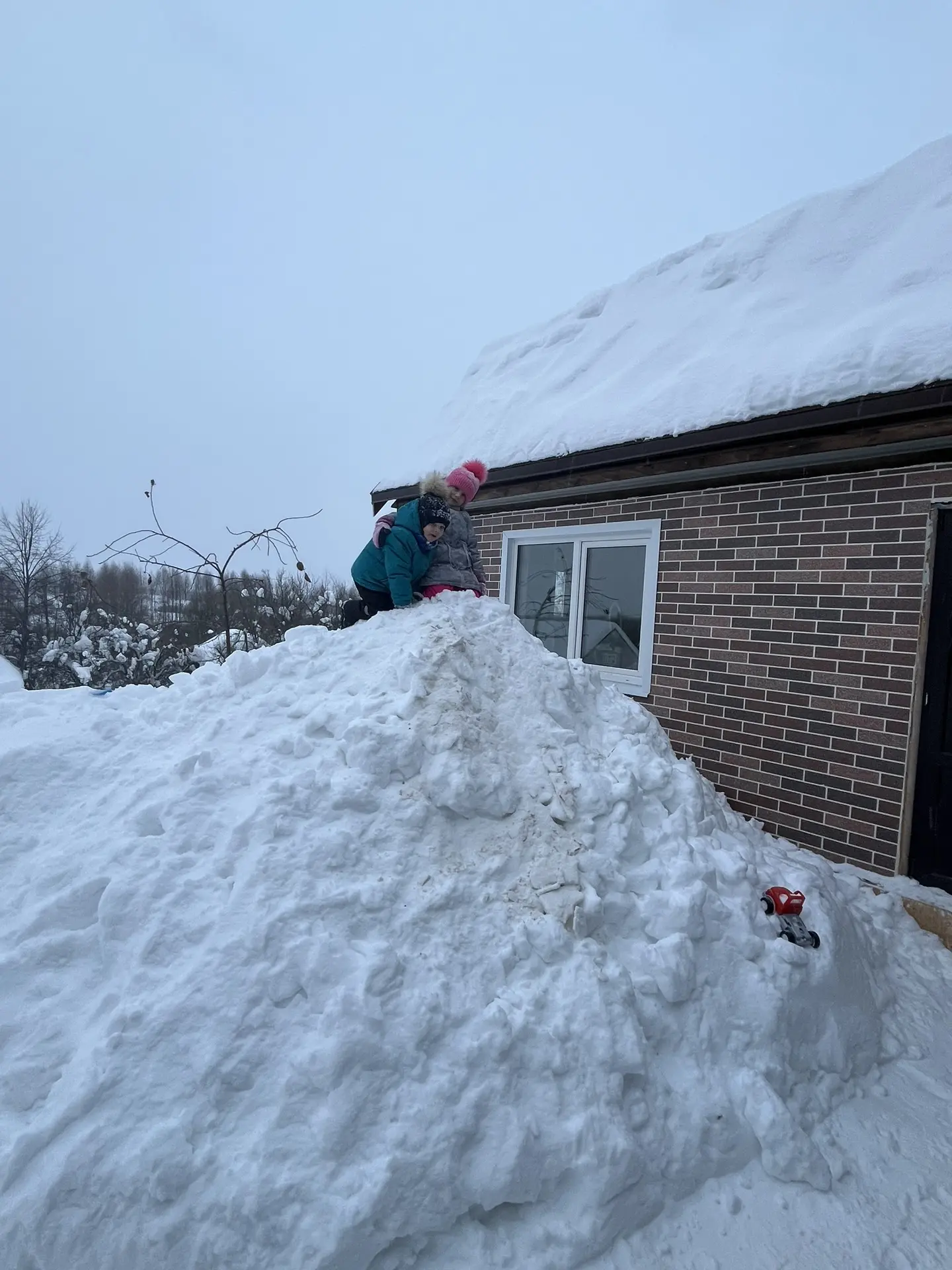 Было тяжеловато, так как снег слежался, но с такой командой помощников мы справились быстро и весело ❄️