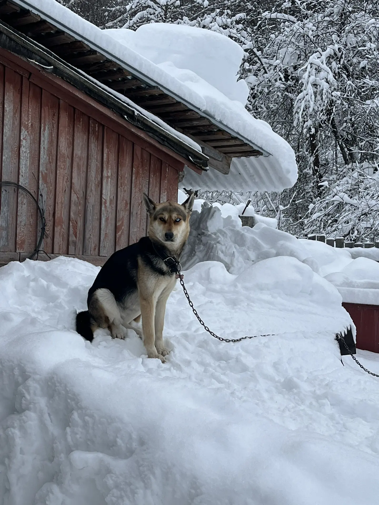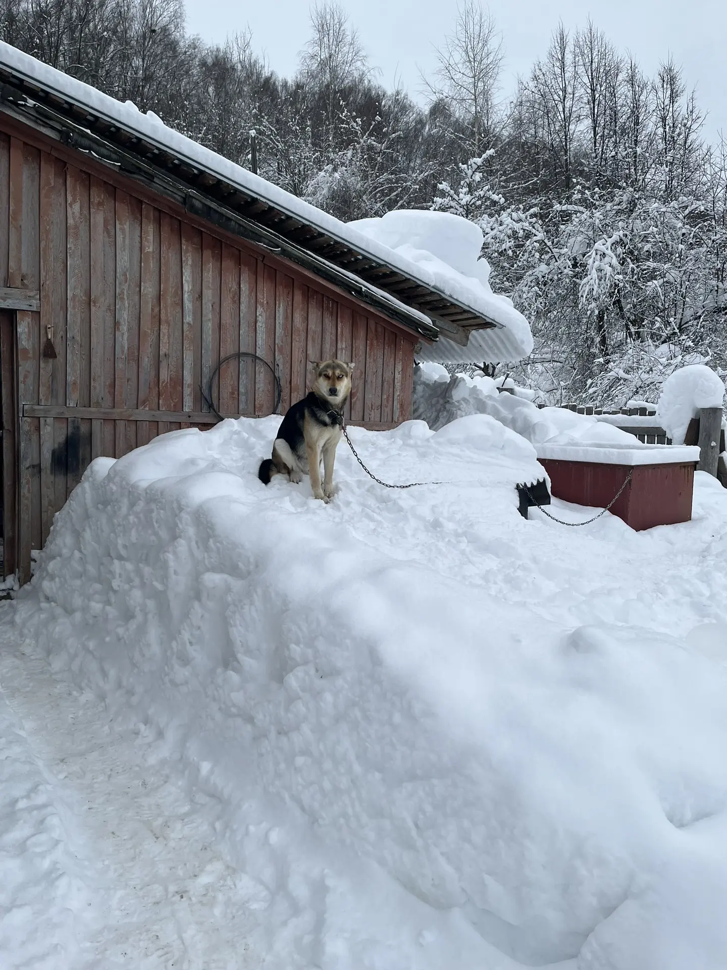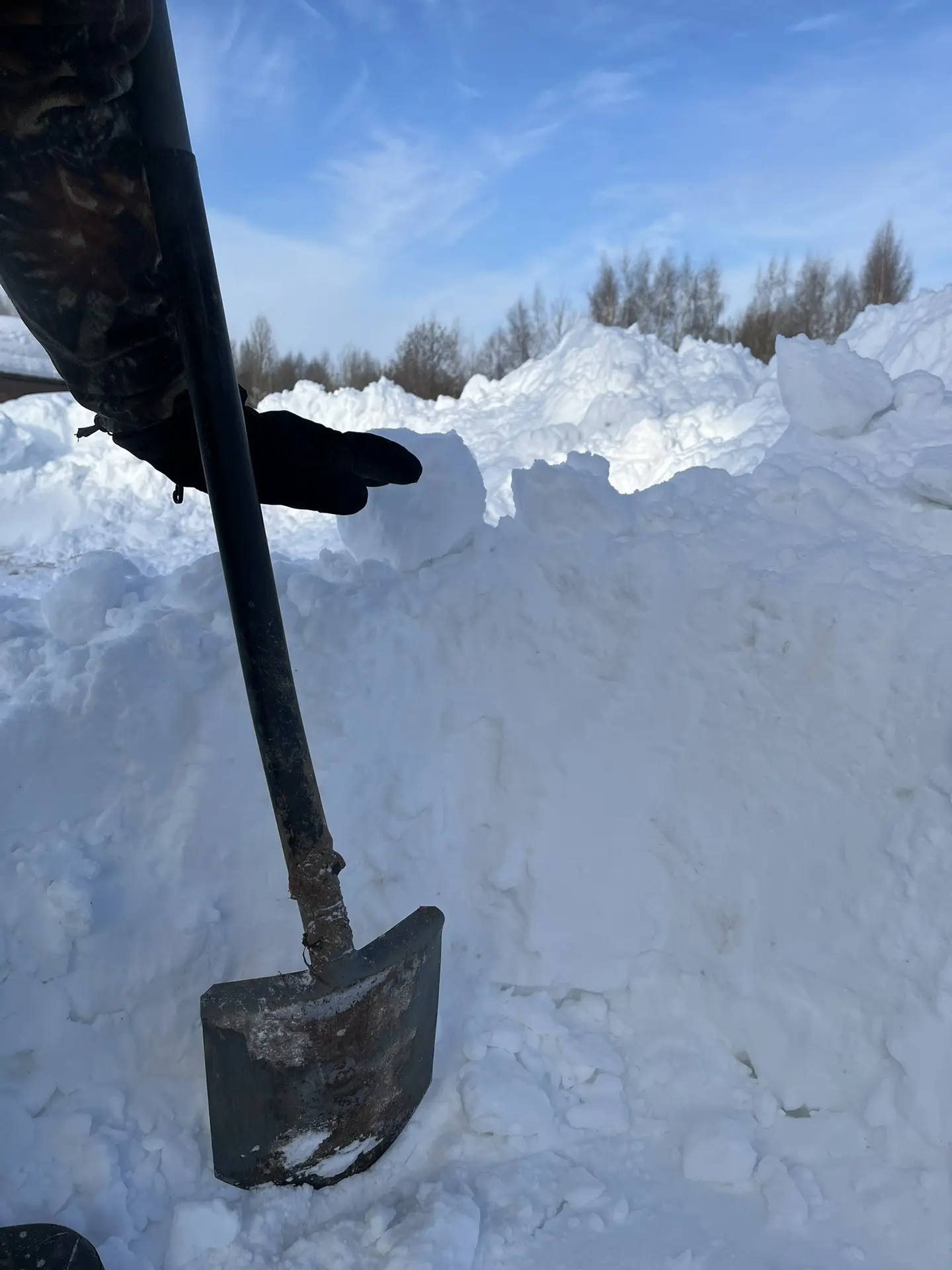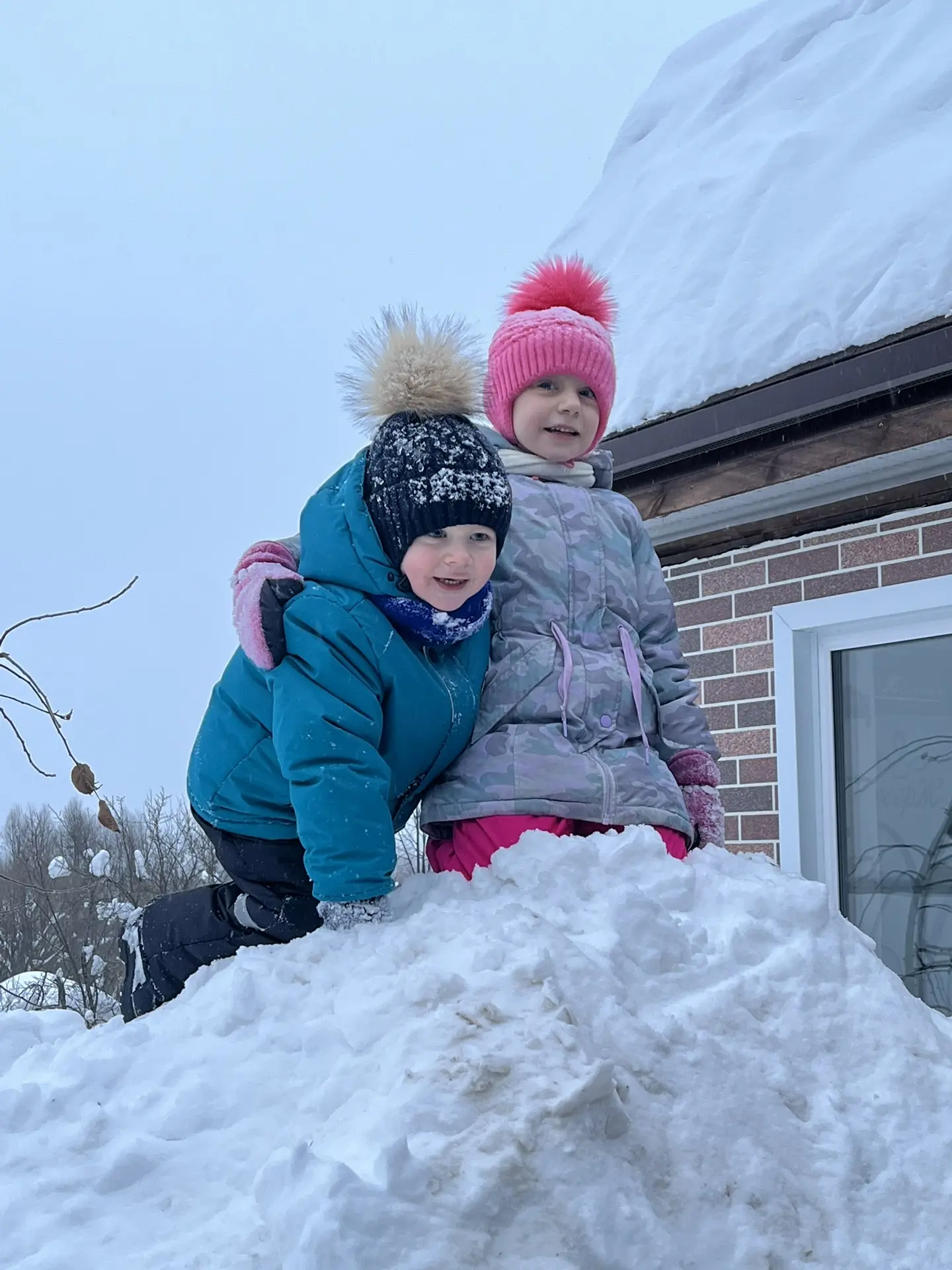 Было тяжеловато, так как снег слежался, но с такой командой помощников мы справились быстро и весело ❄️