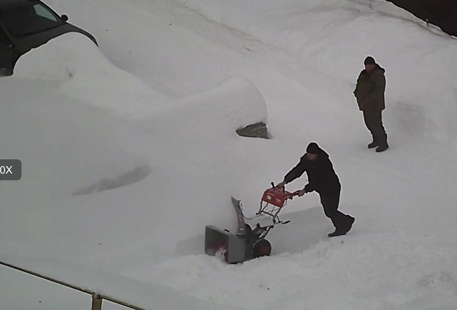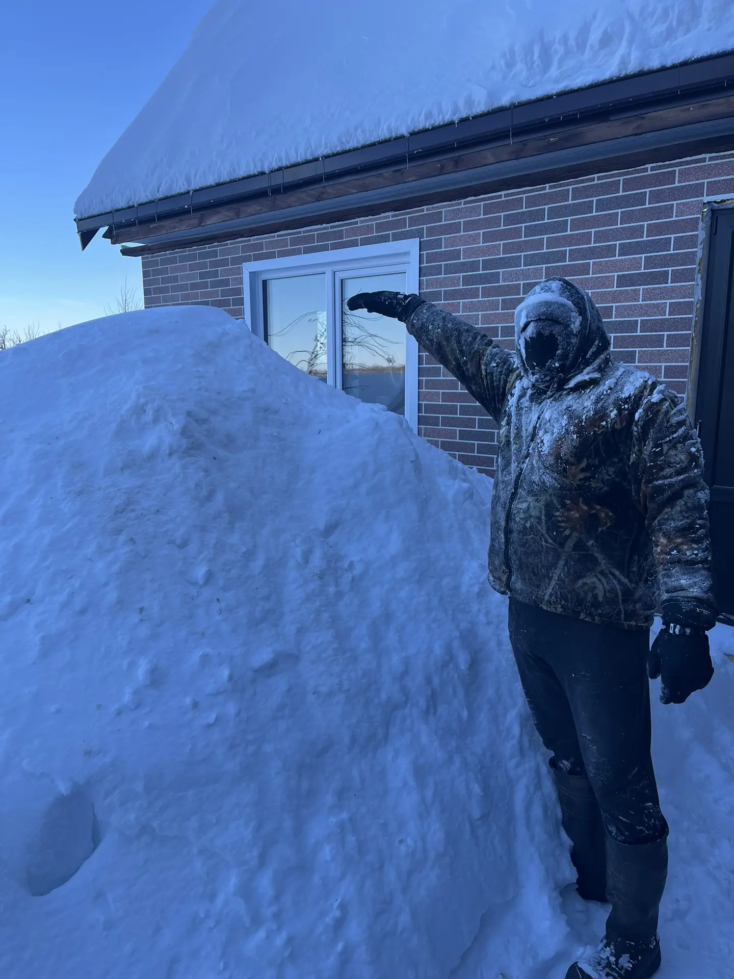 Снегоуборщик починили, кидает снег на 14 метров, наконец то можно дочистить дорожки 👍