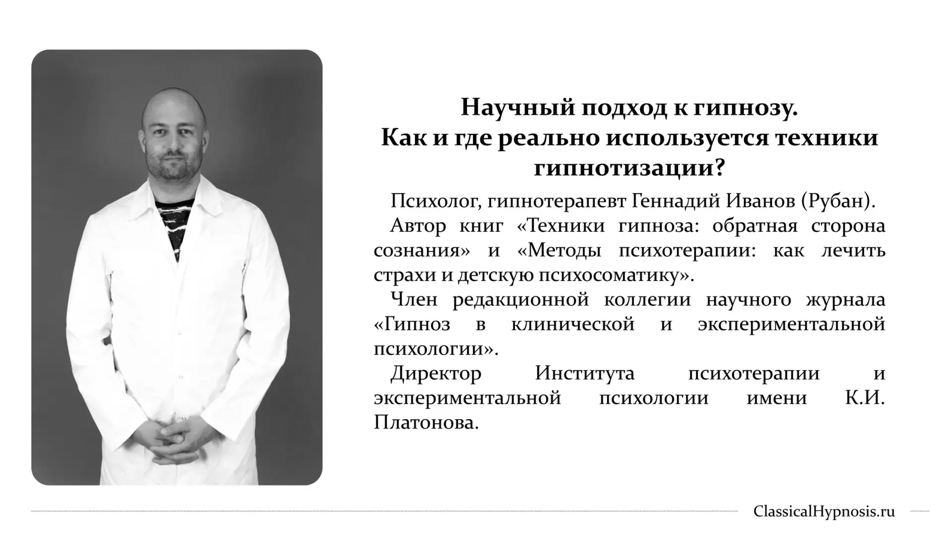 ➤ Обучение гипнозу и гипнотерапии/ Online-курс и очно в мини-группах ➟ https://classicalhypnosis.ru/#LearningHypnosis